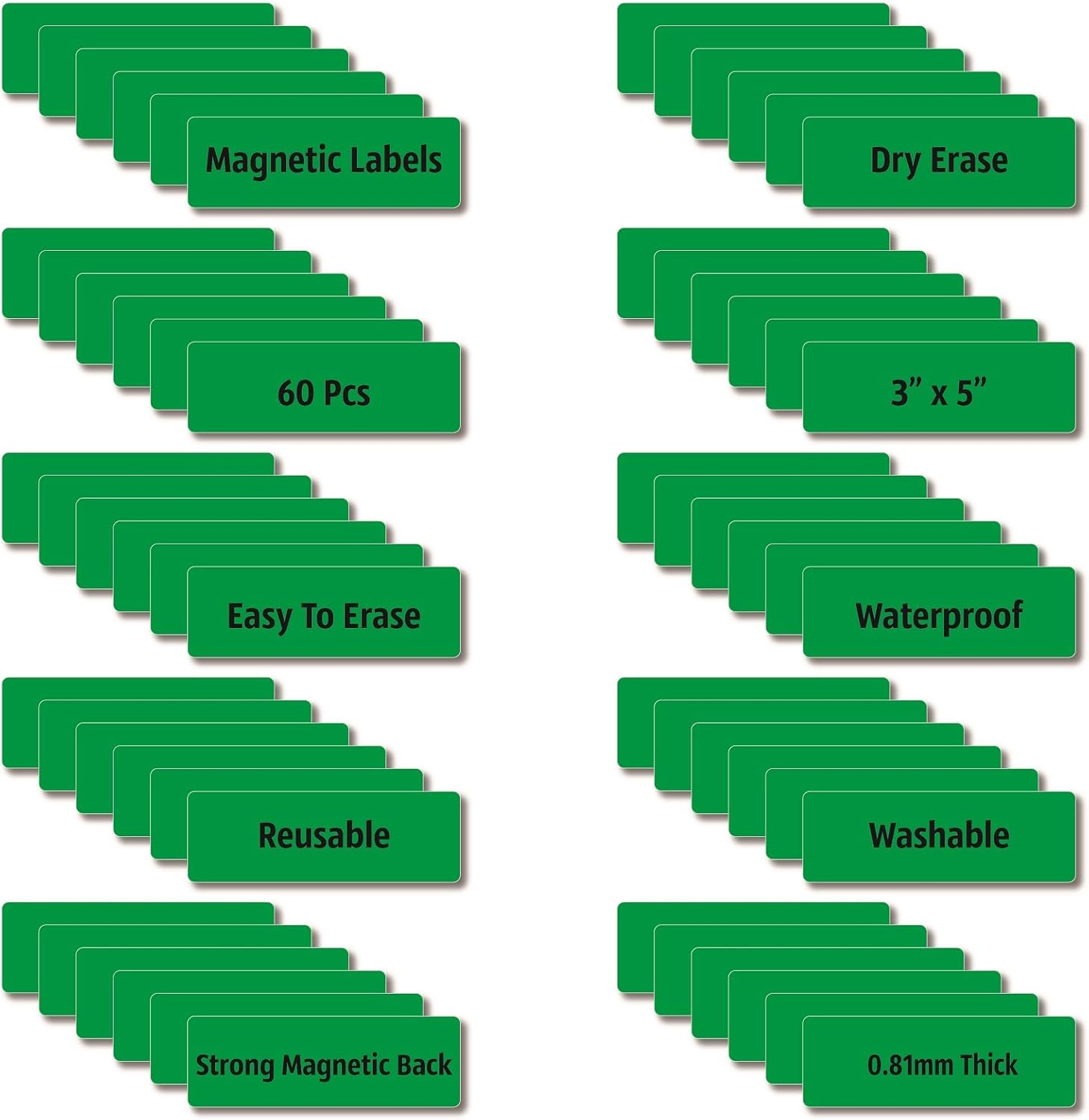 Magnetic Dry Erase Magnets Labels 3x1 inches, Reusable Name Tags, Organizing Schedules in Office/Classroom. Work on Fridge/White Board (Green 60Pcs)