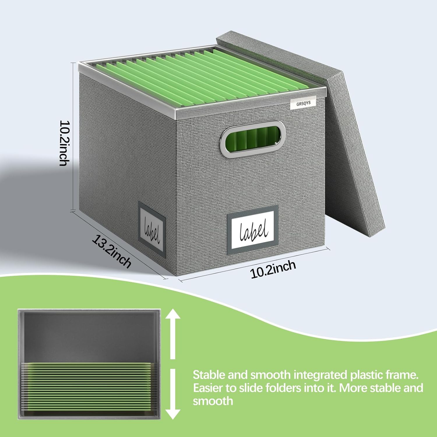 File Organizer Box - File Boxes for Hanging Files with Lid Set of 2 Decorative Hanging Folders Letter Size Organizer with One-Piece Plastic Frame Slides (Grey, 13.2 * 10.1 * 10.1in(2Pack))