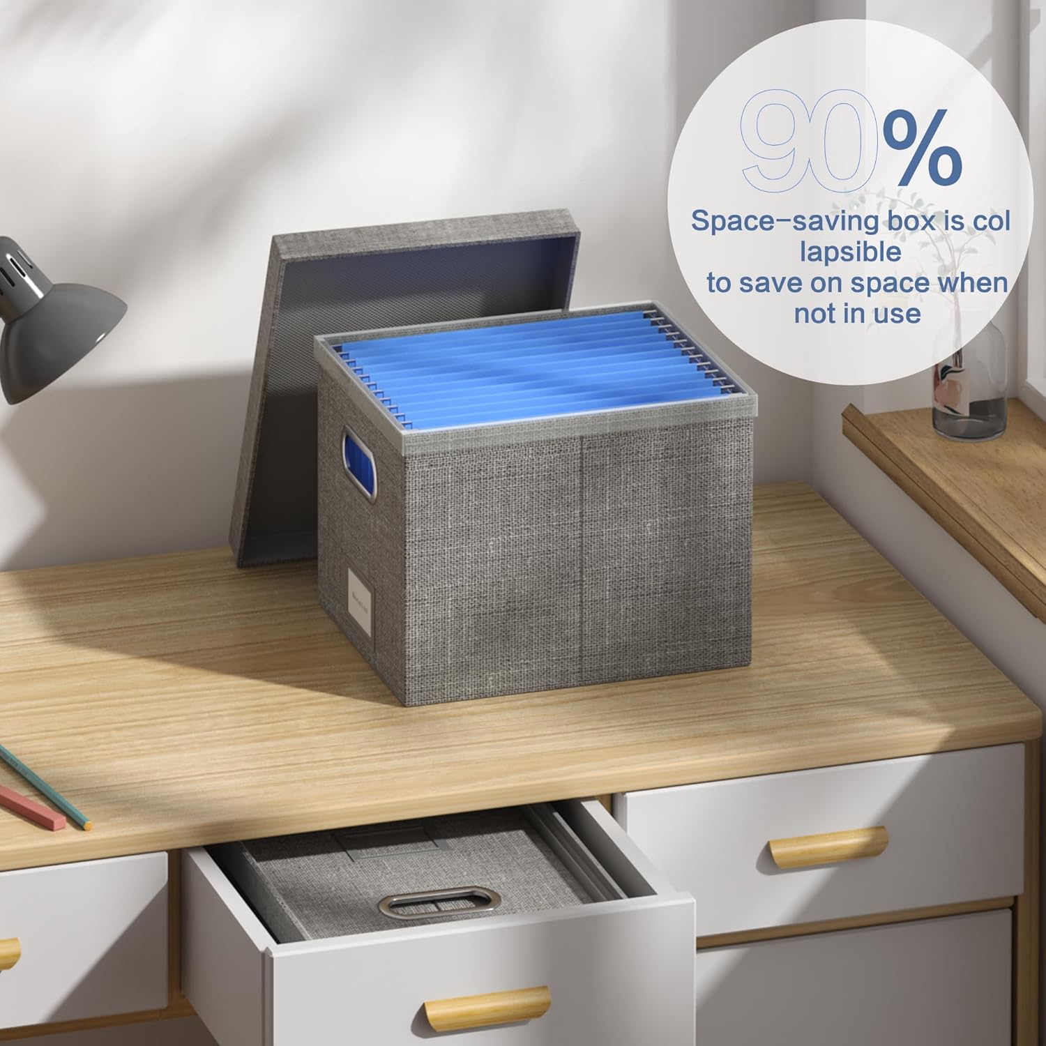 - [Multifunctional Filing Storage ]- File box exterior in linen fabric, inside is made of thickened PP hollow board, more lightweight,not easily deformed. The file storage organizer dimensions 13.2 x 10.1 x 10.1 inches, provides more storage space for the file. This file box organizer is perfect for letter-size documents. The functional and decorative design of the box creates a flat and unclutred space. It also acts as a small filing cabinet for tax documents and other documents storage.