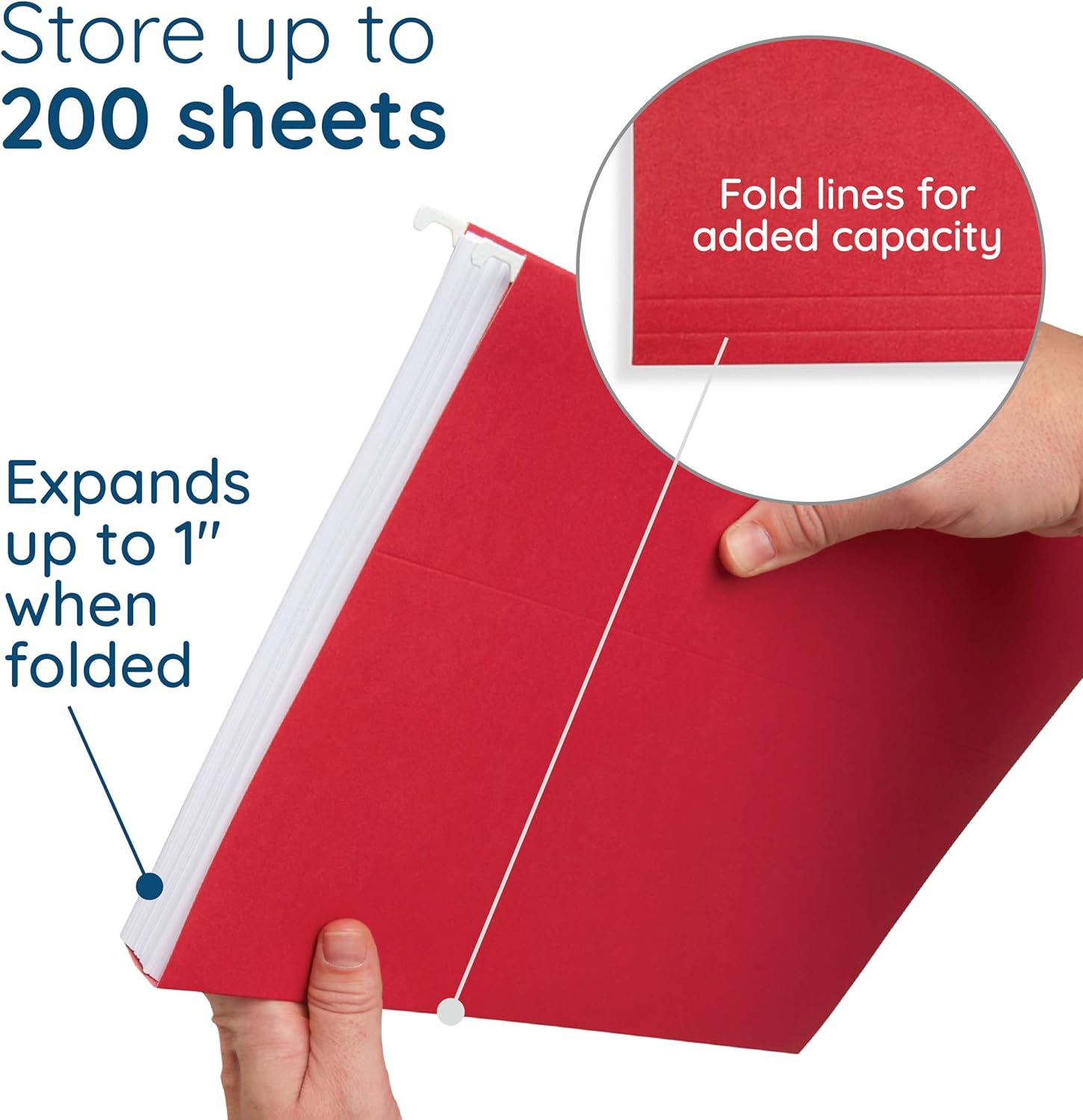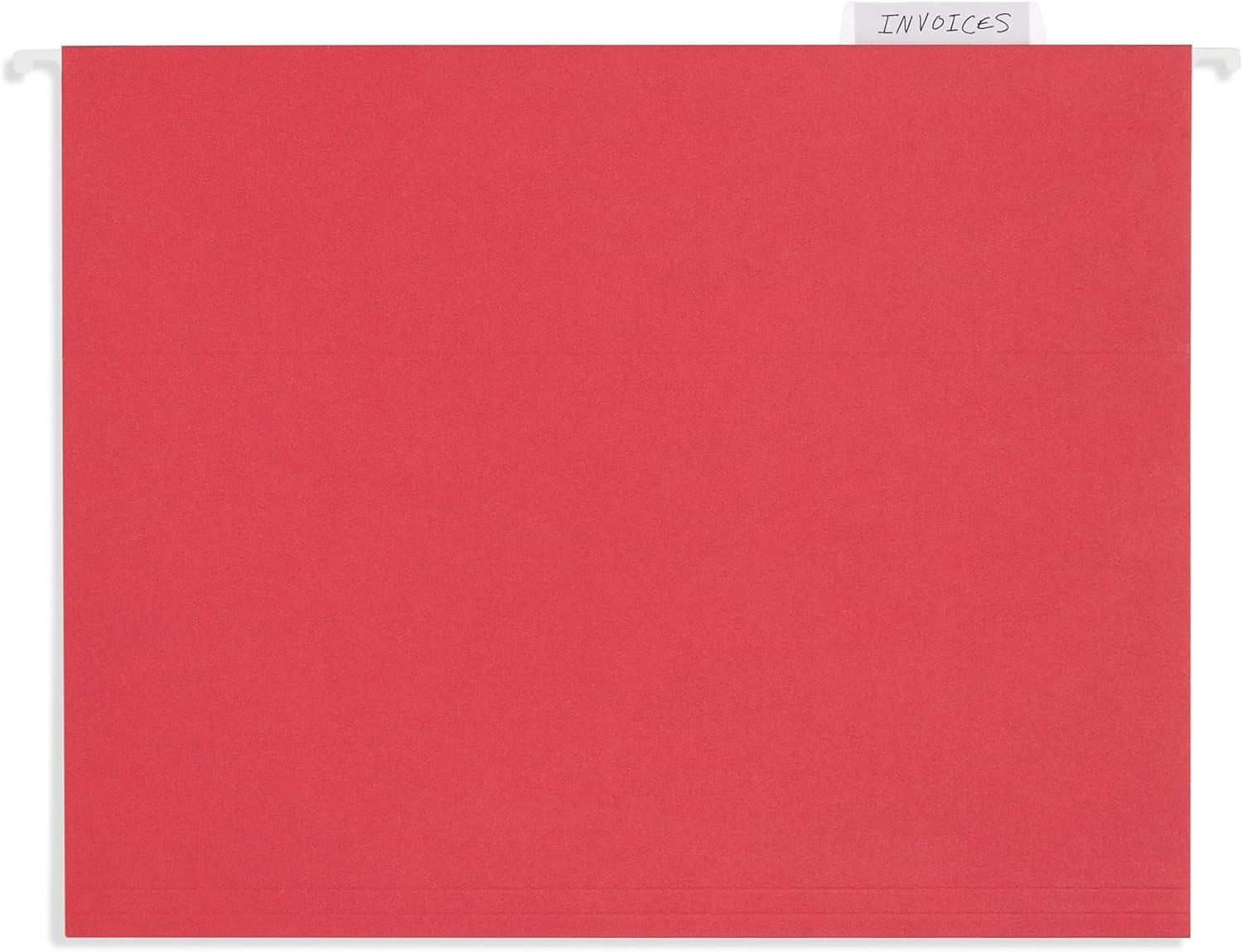 25 Blue Summit Supplies Red Hanging File Folders Letter Size – Durable 11pt Paper, Plastic Tabs and Inserts Included, Fits Standard Filing Cabinets and Desktop Organizers