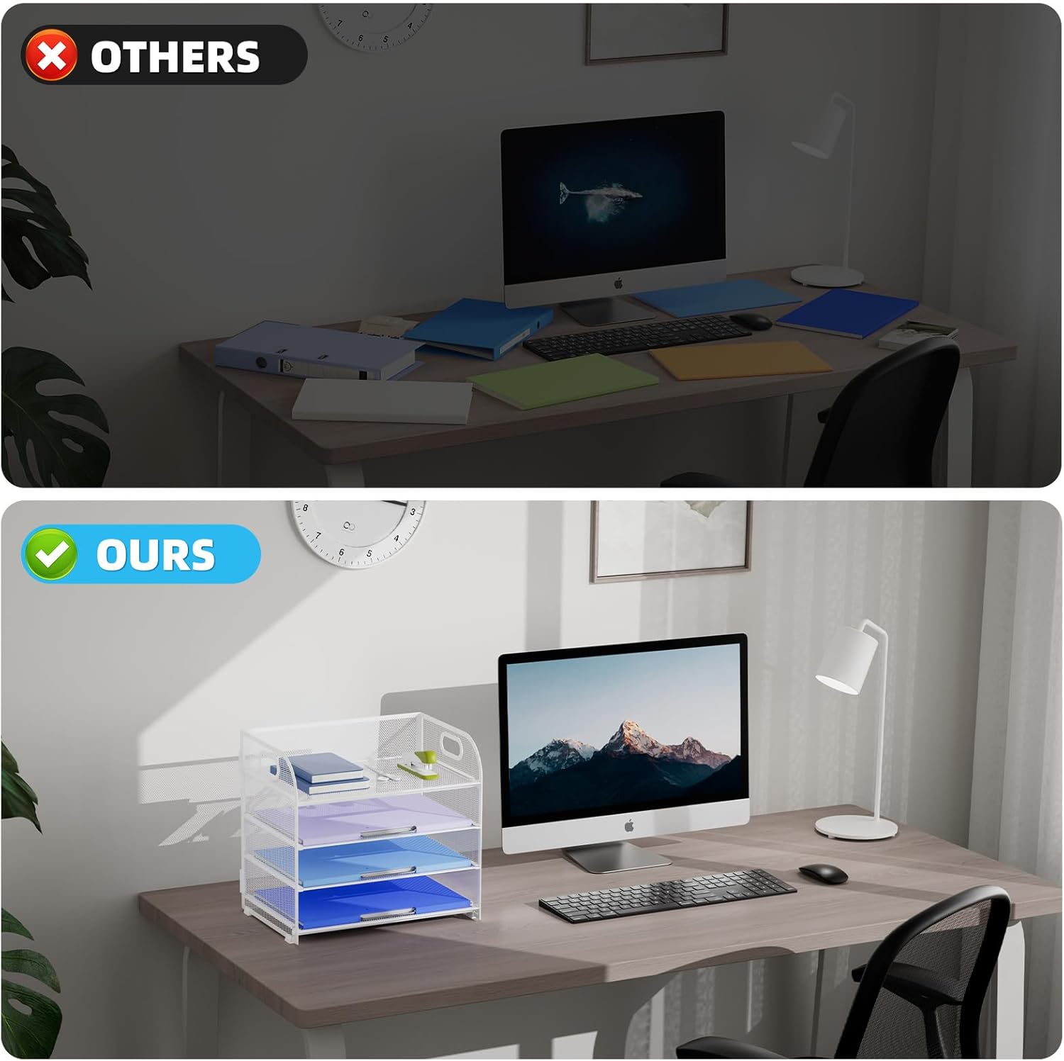 - 【PREMIUM QUALITY】The mesh desktop file organizer is made of lightweight durable metal mesh and reinforced with a solid steel frame that makes it have long-lasting strength and reliable performance.