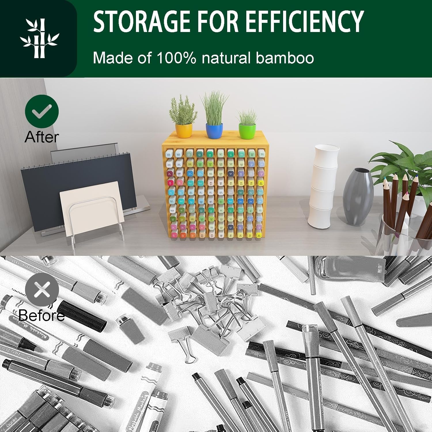 - DESIGNED FOR CREATIVITY - This marker holder is designed with artists in mind. Whether you are a professional artist, illustrator, animator, or hobbyist, our bamboo organizer provides a convenient and practical solution to keep your art supplies organized and easily accessible.
