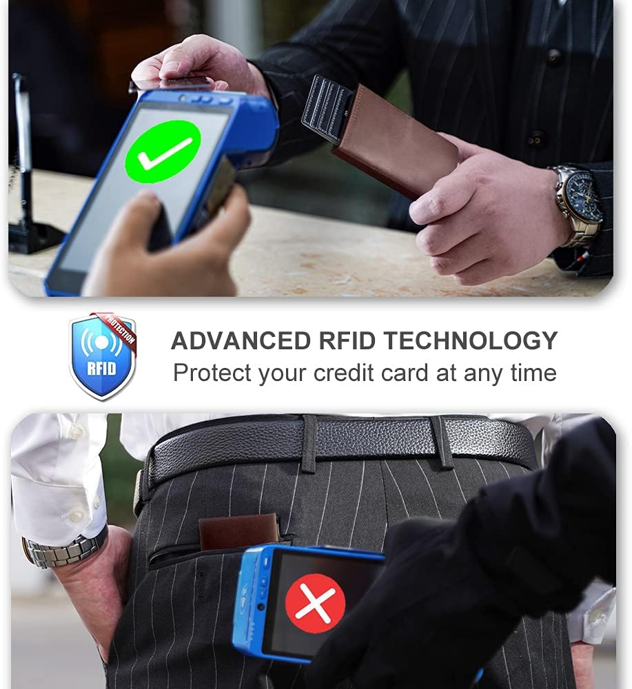 - [Magnetic Closure]-Cartera wallet card holder is made of high-grade aluminum alloy box + high-grade leather, With 4pcs Strong Magnets, better than normal card holder, so that the card holder will not open when closed,edge Wallet Cartera de Hombre.The ultra-thin wallet is designed to fit directly in the pocket for easy carrying, and the leather wallet can be used to store cash.