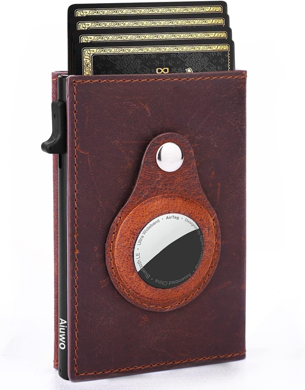Aiuwo Airtag Wallet for Men,Mens Wallet Card Holder,Smart,Slim,Minimalist Wallet,Credit Cards Holder RFID Blocking Wallet (Airtag Wallet, Crazy Horse Brown)