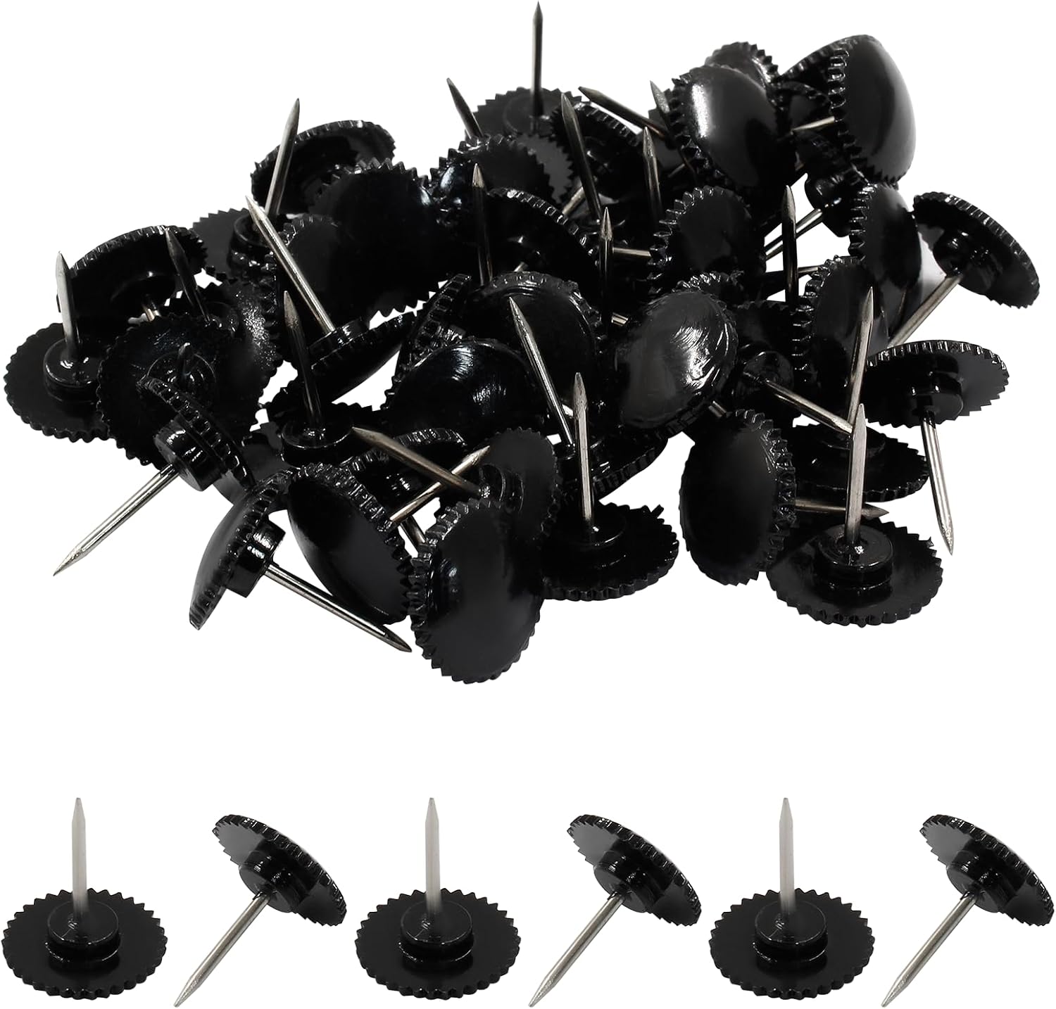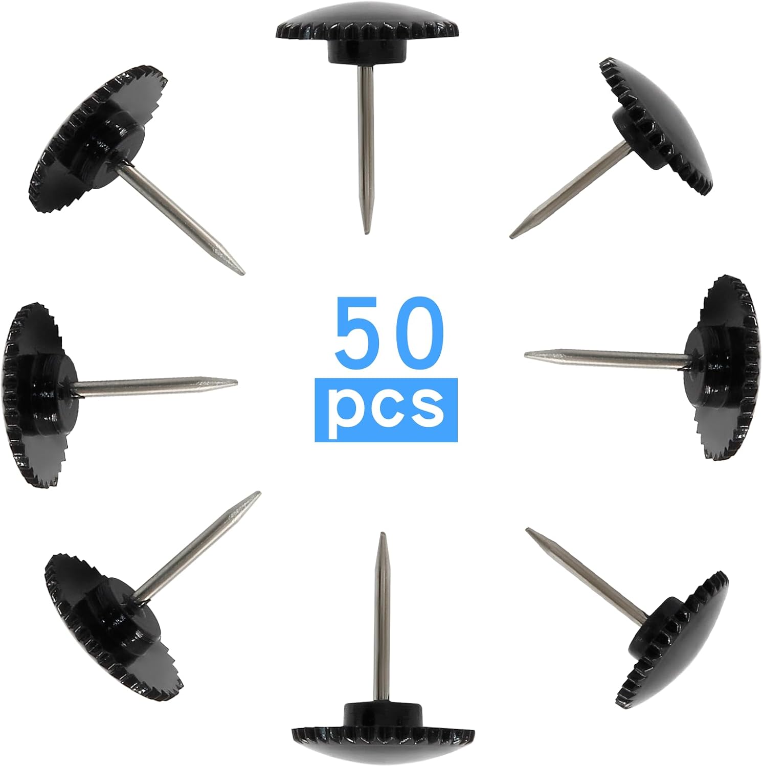Piutouyar 50 Pcs Black Push Pins, Plastic Thumb Tacks for Wall Hanging, Flat Head and Steel Point Push Pins Wall Tacks Thumbtacks for Furniture Cork Board DIY Projects or Home Decor