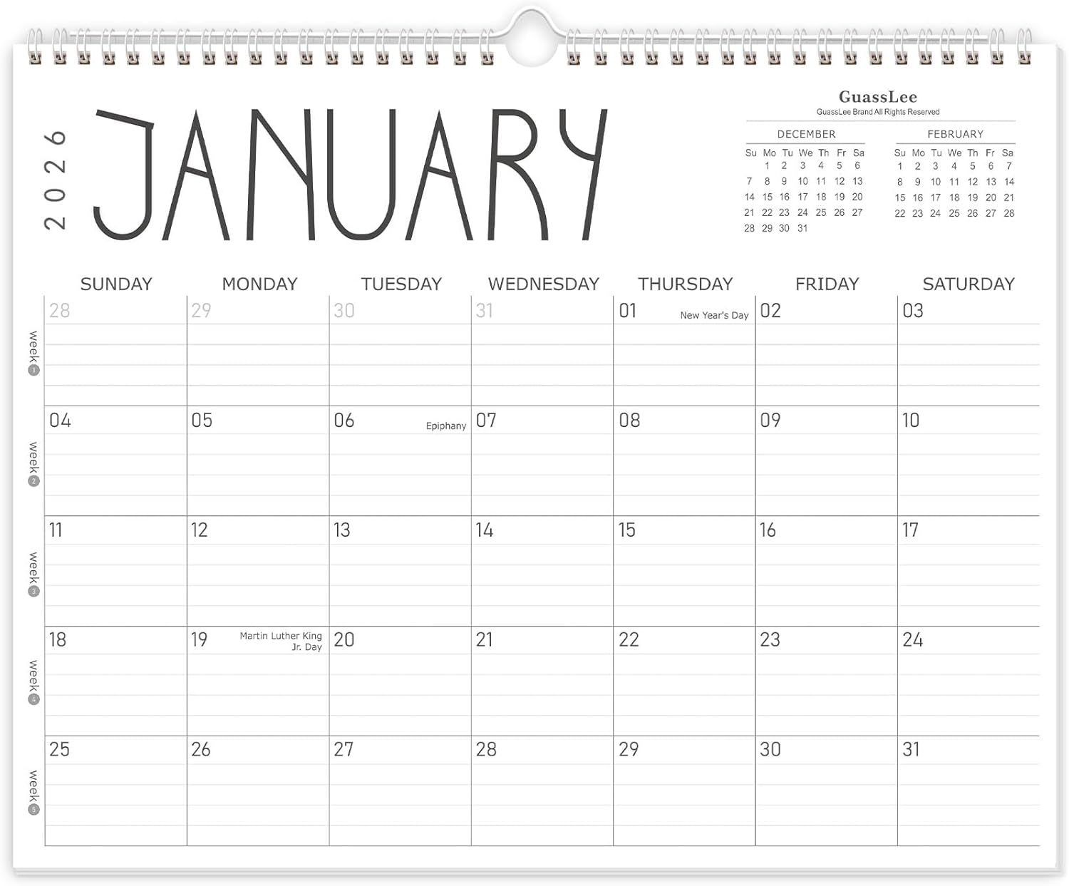 - Sleek Minimalist Design: Each month features soothing black white tones, big daily blocks, highlighted holidays and spaces for To-Do list and notes, our 2026 wall calendar promotes focus by avoiding distracting colors. Whether it's a monthly design or plenty of writing space, we are glad to helping you inspire and uplift you as you tackle your tasks