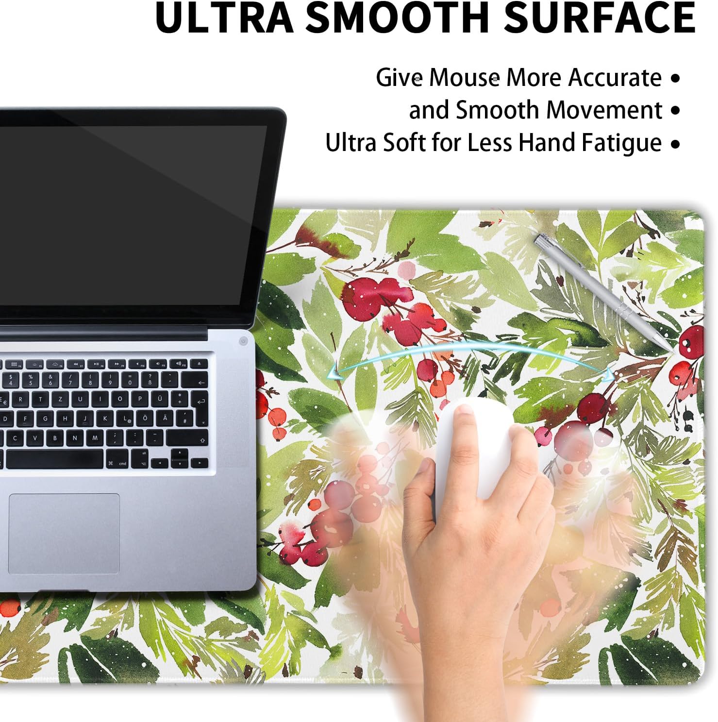 - ★【Soft Non-slip Rubber Base】: Soft and dense non-skid nature rubber base keeps the full desk pad firmly in place, providing stable operation of the mouse and keyboard. This Xmas large mouse mat remains uniformly flat even over imperfect surfaces. You can completely immerse yourself in work or games without worrying about the mouse pad moving.