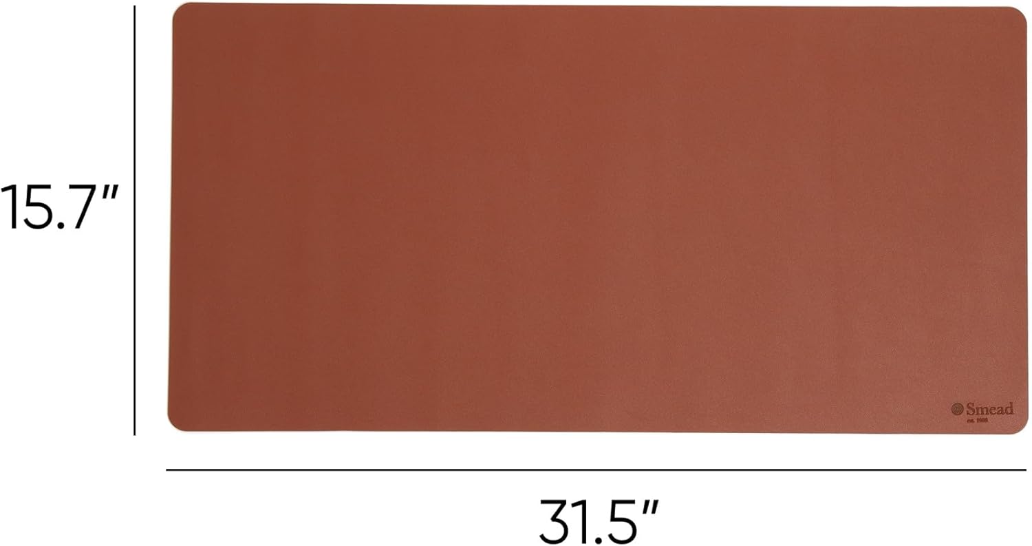 Smead Desk Pad, Vegan Leather Desk Mat with Non-Slip Faux Suede Backing, Perfect Desk Organizer for Office Decor, 31.5” x 15.7” Medium, Saddle (64832)