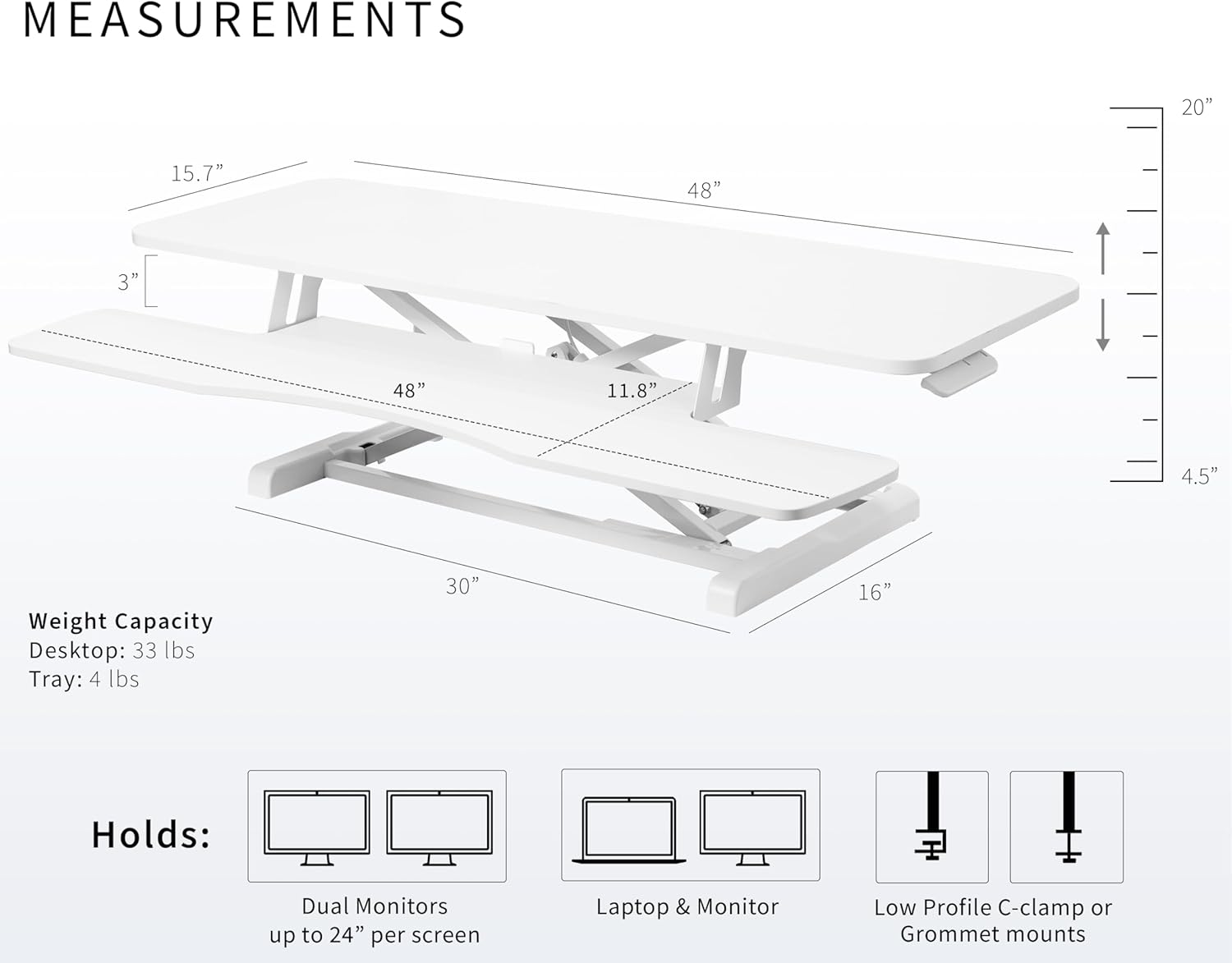 VIVO 48 inch Desk Converter, K Series, Height Adjustable Sit to Stand Riser, Dual Monitor and Laptop Workstation with Wide Keyboard Tray, White, DESK-V048KW