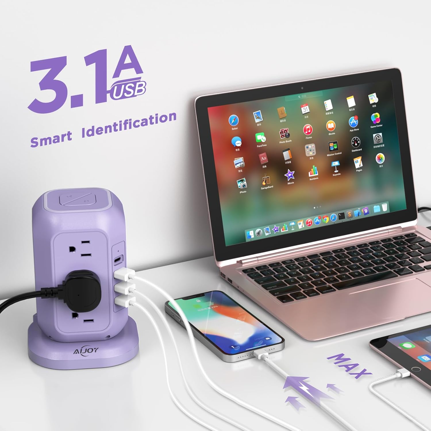 - 1200J Enhanced Safety Features: Power strip surge protector has passed FCC, RoHS certification, this surge tower has surge protection, overload protection, short circuit protection, lightning protection. The power tower charging station use the ceramic SPD to automatic cut off the power fastly when voltage surge is detected, to ensure you a safe charging environment; The power tower has a reset button, in case the maximum voltage is exceeded and the unit shuts down