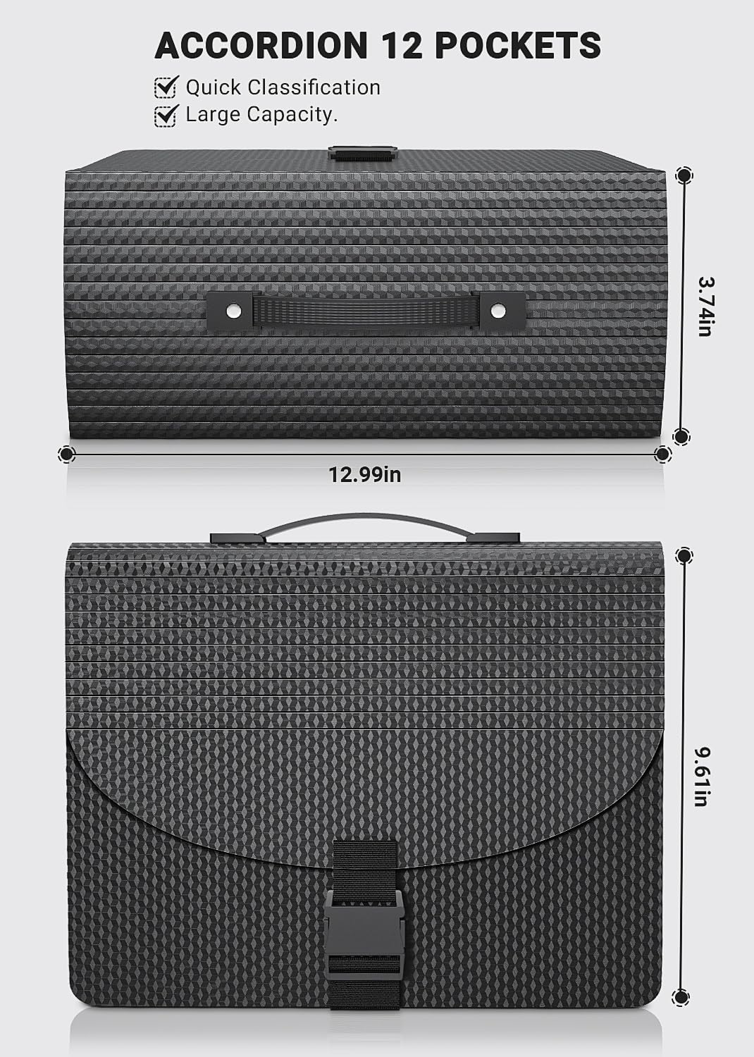 Expanding File Folders,Accordion File Organizer with Handle,13 Pockets Expandable Filing Folders,Tabs Included Filing Box,Adjustable Strap,Bill Documents Organizer,A4/Letter Size,Diamond