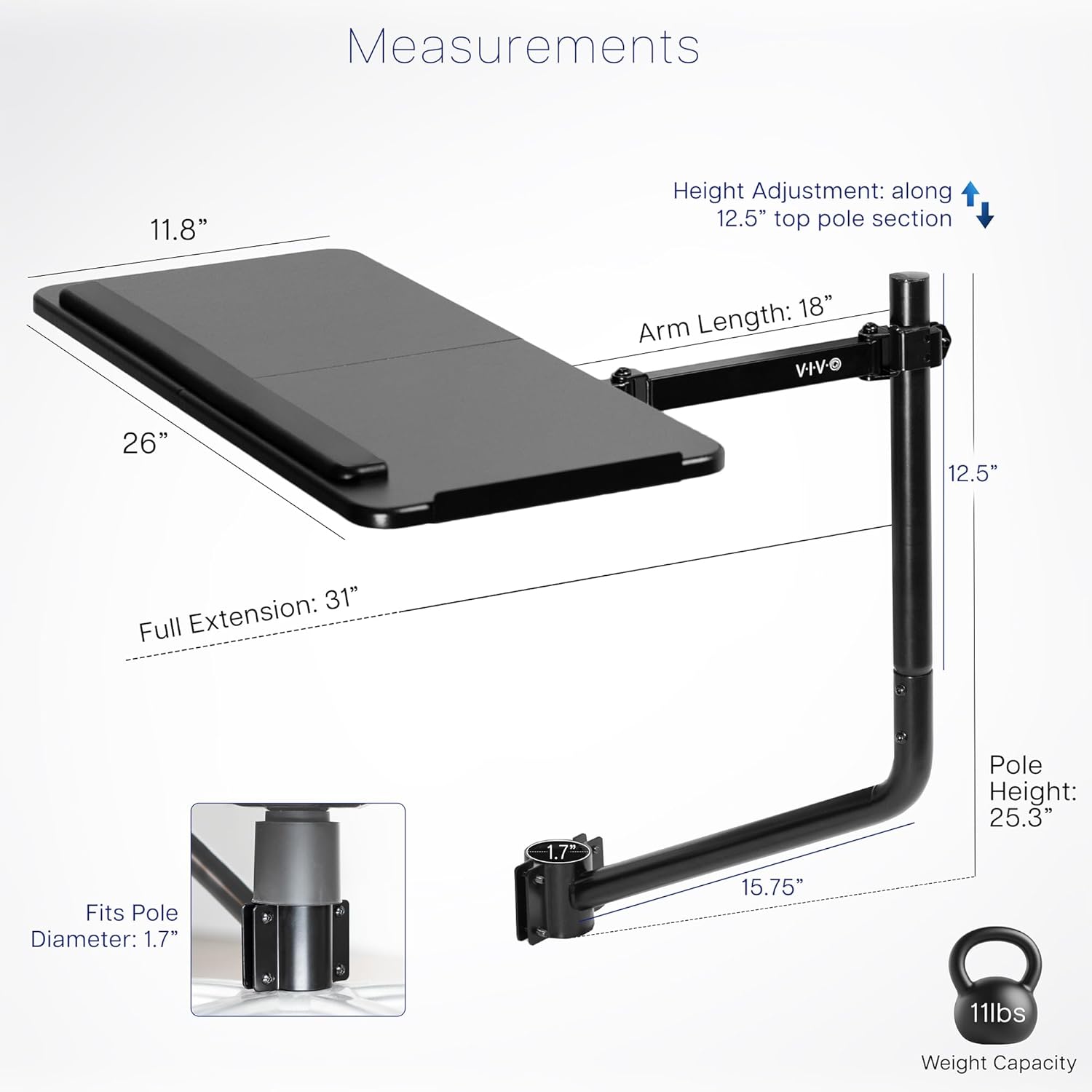 - Over Chair Keyboard Tray: Steel arm support attaches to the bottom tube section (1.7” to 2” in diameter) of a standard height adjustable office chair for ergonomic typing angles and customized placement --Patent Pending--
