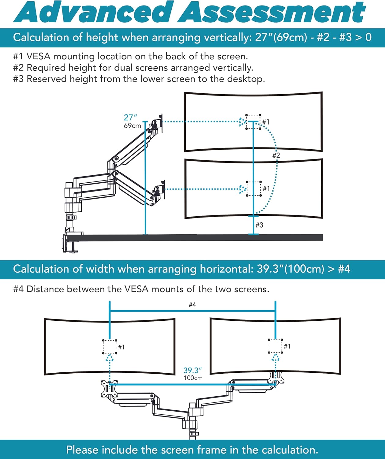 - Screw Set for VESA Mounts - M4 and M5 screws come standard in the package. For Samsung G9 monitors, use the VESA adapter that comes with your monitor.