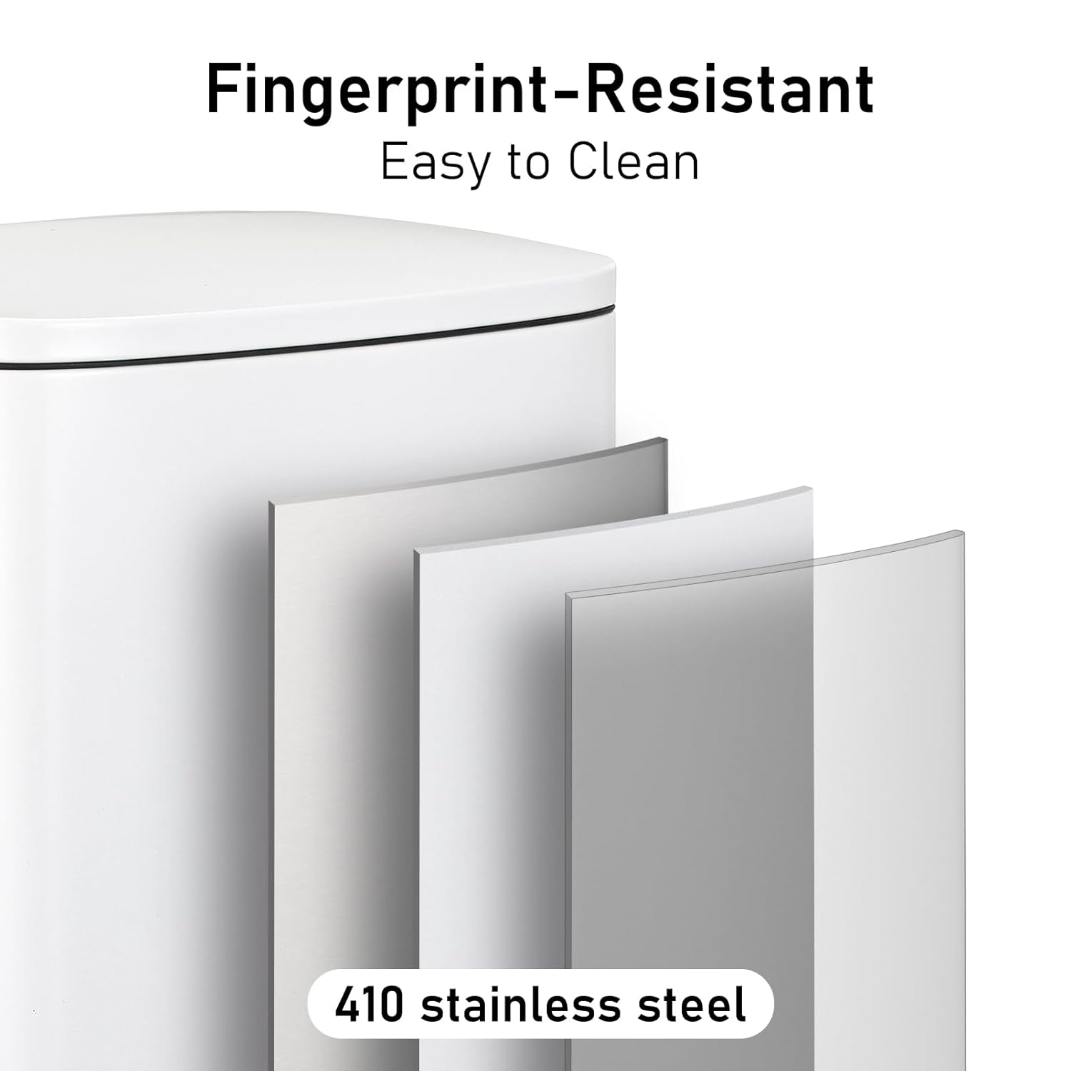 Arlopu 13.2+1.3 Gallon Step Trash Can, Stainless Steel Garbage Bin, Soft-Close Rubbish Bin with Removable Plastic Inner Bucket, Fingerprint-Proof, Lid Dustbin, for Kitchen Home (White)