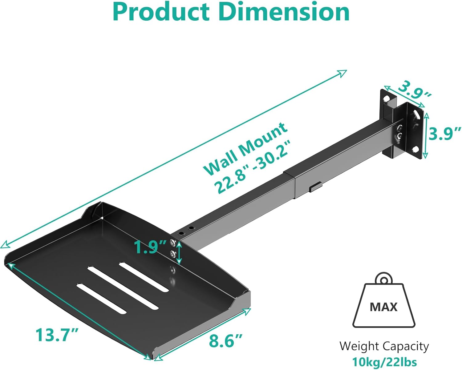 - Height Adjustment: Its height adjustability allows you to change rooms, projectors, and screen configurations without buying a new mount. When ceiling mount it can extend 14.1"-21.6", when wall mount it can extend 22.8"-30.2"(including universal tray)