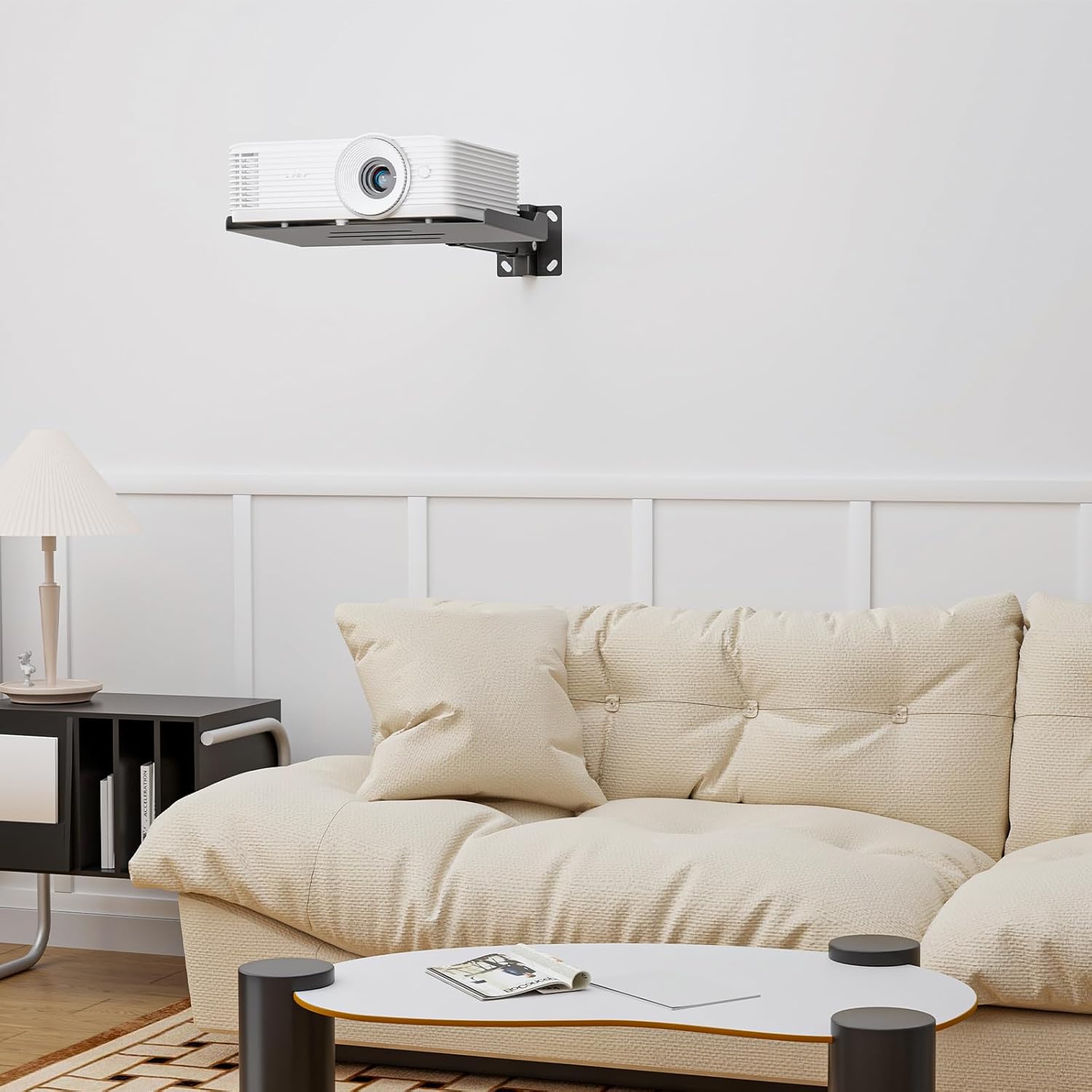 WALI Projector Ceiling Mount Tray,Projector Wall Mount Holds up to 22lbs, Height Adjustable Universal Projectors Mount, No Hole Installation, Hidden Cable Routing, Black(PM-005-B)