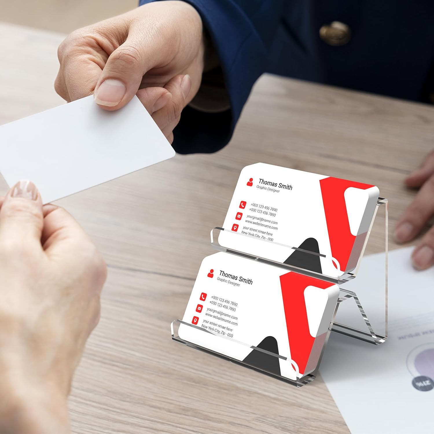 Acrylic Business Card Holder, 2-Tier Business Card Display, Clear Business Cards Stand for Desk & Counter, 2 Pack