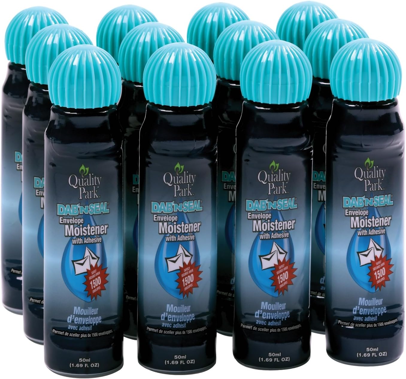 - This bulk pack of 12 Dab-N-Seal envelope moisteners keeps you ready for envelopes and crafts; fast-drying adhesive formula moistens as it seals; up to 1,500 envelopes per 50 mL bottle