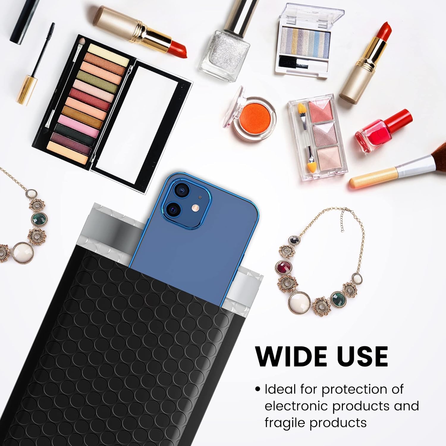 - Perfect Size Black Bubble Mailers: The small bubble mailers outer size is 4x8 inch, while the inner size is 4x7 inch. It is very suitable to transport for jewelry, makeup, cards, phone case, lips, photos,handcraft and more.