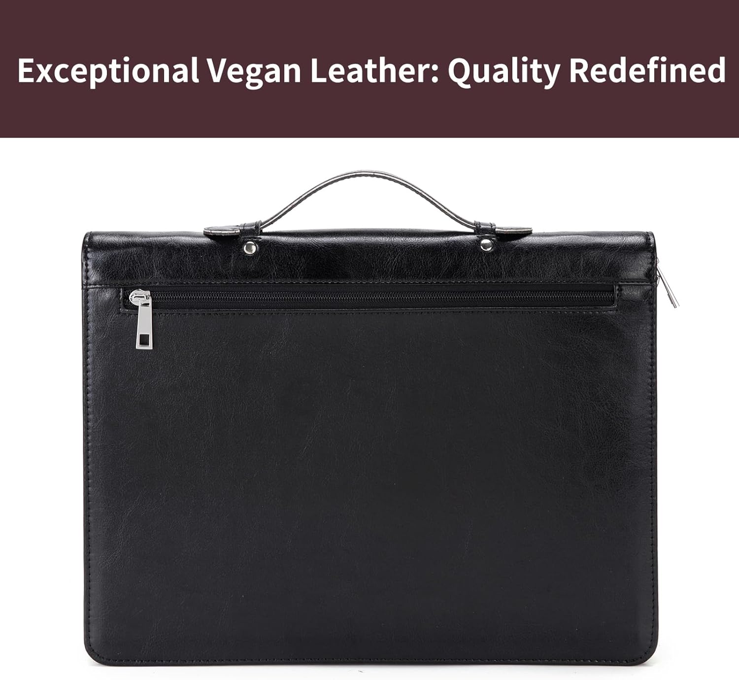 Personalized Vegan Leather Portfolio with Hidden Handle, Zippered Front Pocket, 8.5 x 11 Notebook Holder, Custom Business Legal Padfolio Travel Folio for Men Women, Black