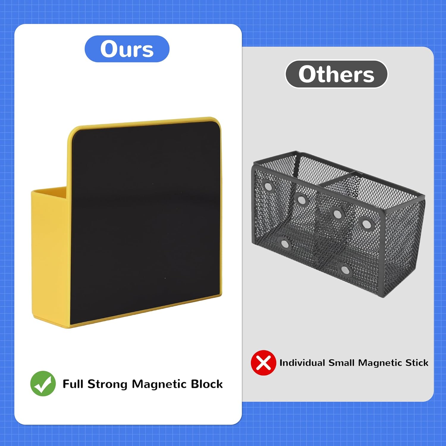 - 【Adjustable Divider Design】There are a movable divider and 3 slots inside, you could adjust the divider as you like to vary the size of the compartment. Also, our magnetic pen holder has enough space to store for 12 dry markers or 2 dry erase if you remove the divider.