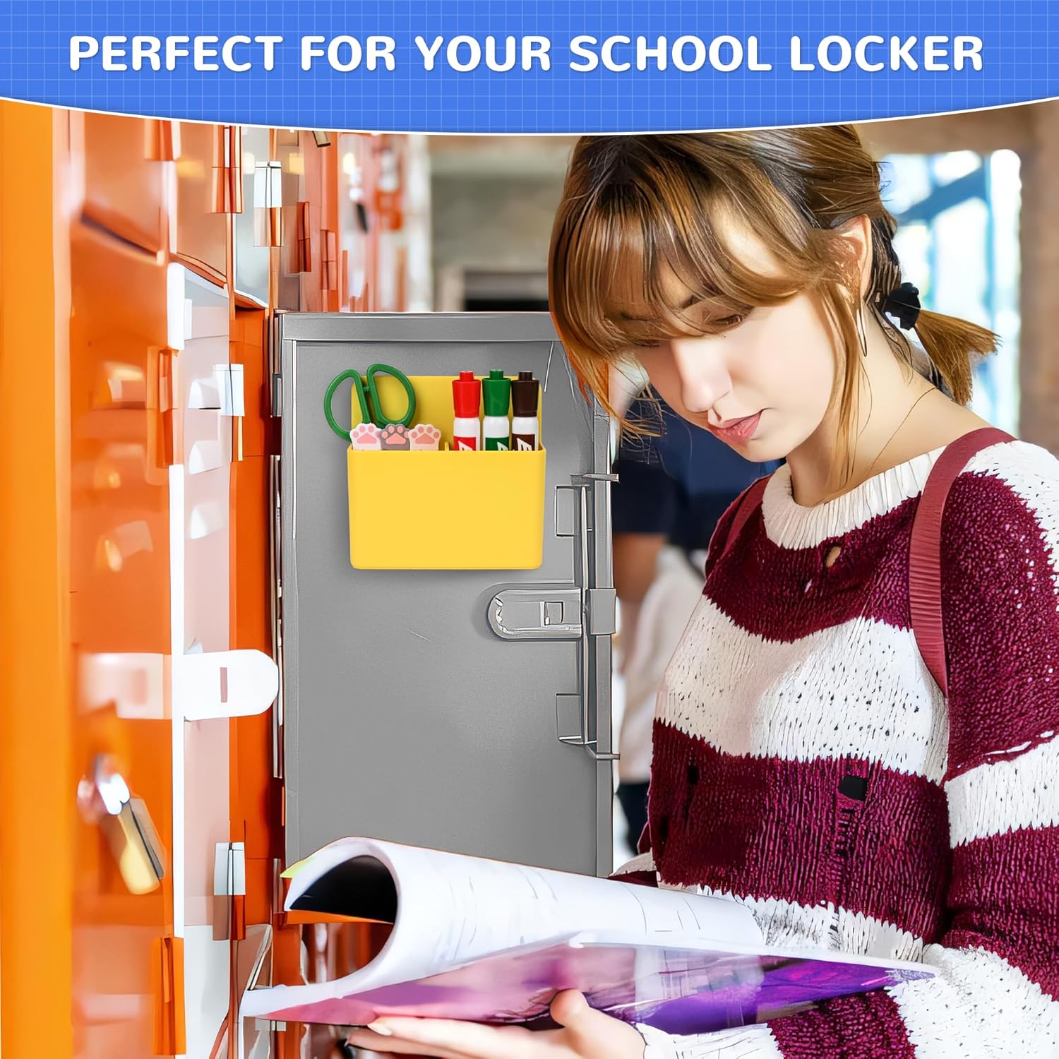 Magnetic Dry Erase Marker Holder, Magnetic Pen Marker Holder for Whiteboard, Fridge, Locker Accessories, School, Office, Home, Magnet Pen Cup,1 Pack, Yellow
