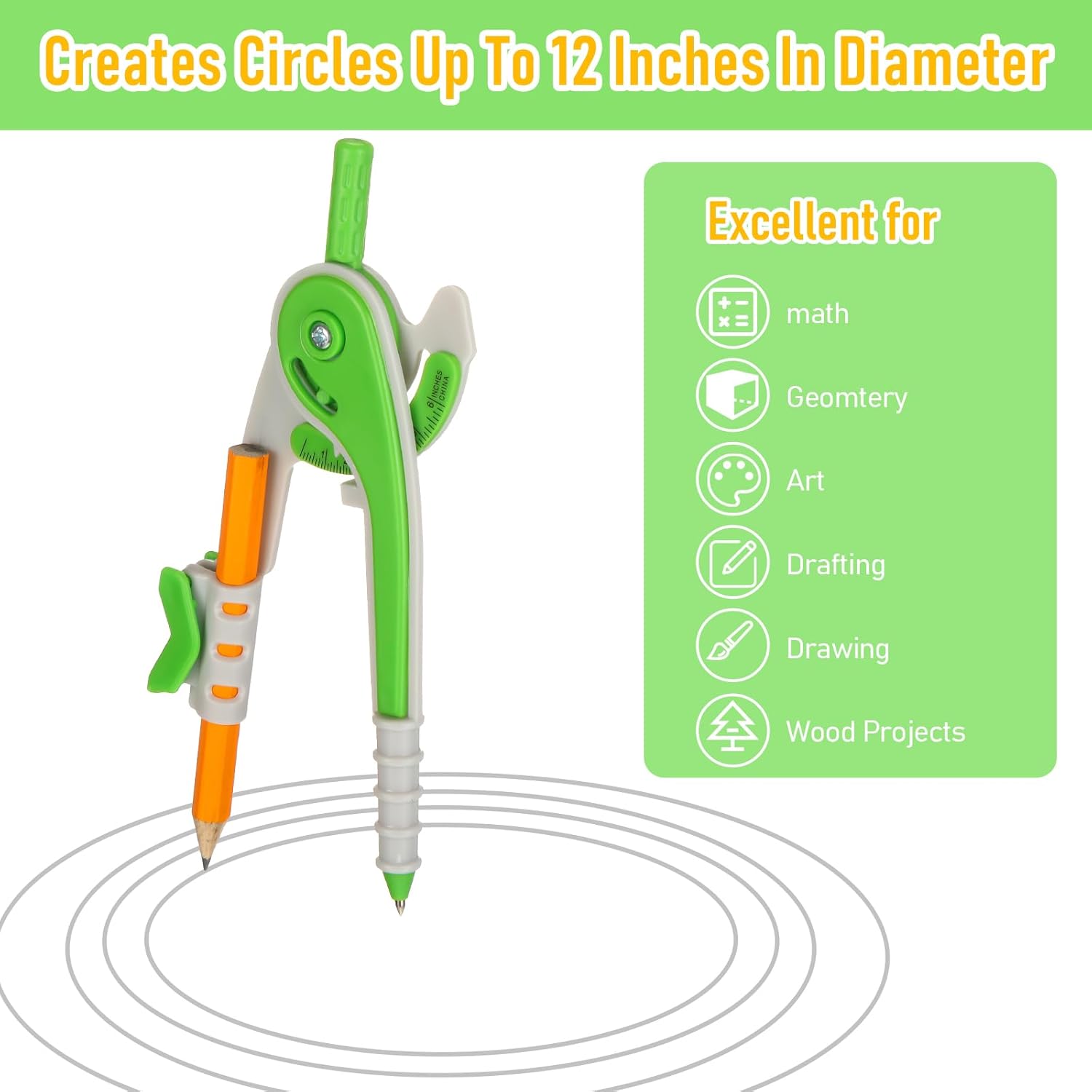 - Measuring Math Tools: the plastic compass comes with round corner design on compass needle, safe and reliable to use without worrying about scratching; The compass has a pointer at the top measurement, and students can quickly draw a circle of the corresponding size; It is ideal for homework, drawing, painting, drafting and so on