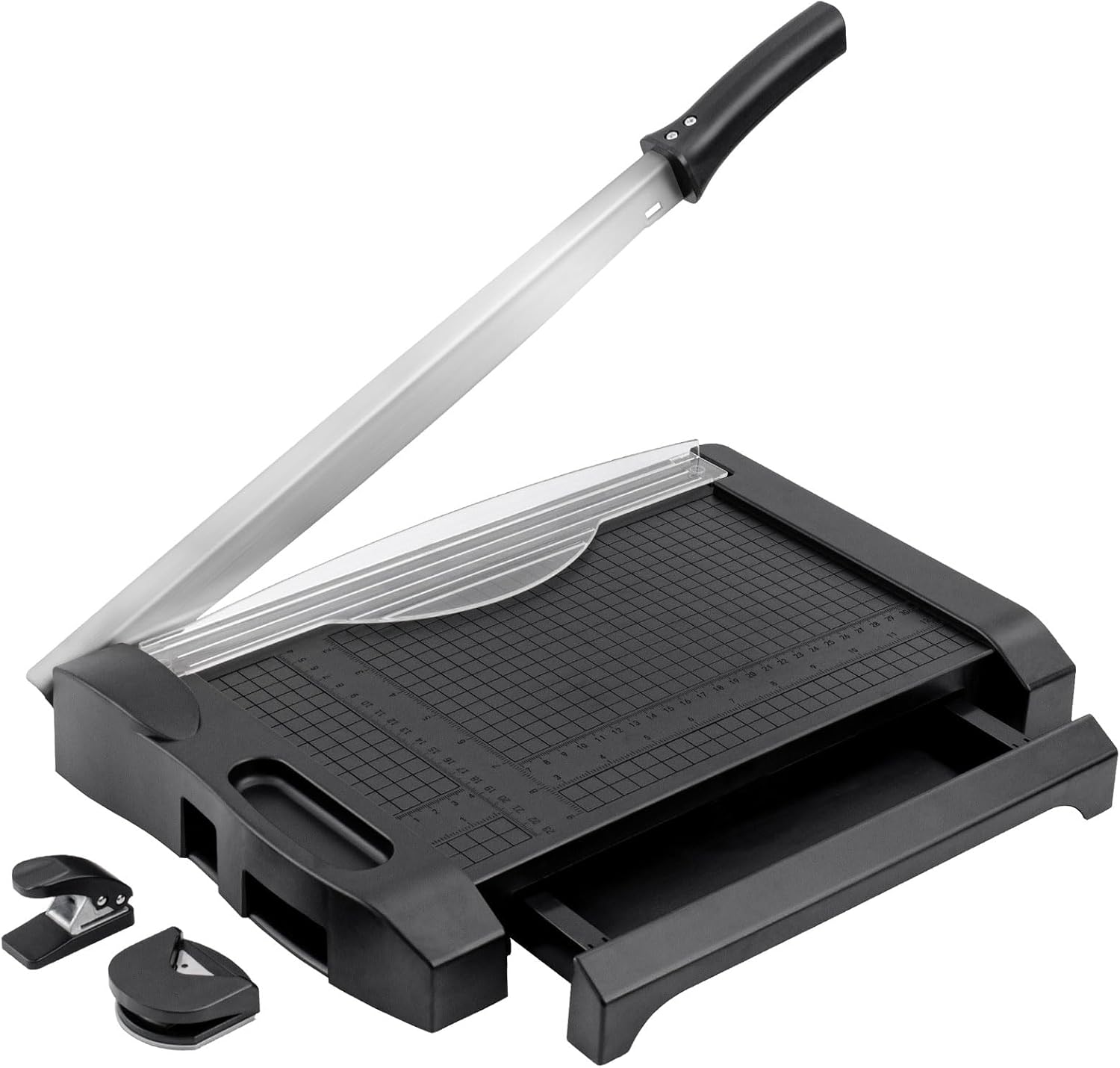 - Cutting Accessories Bonus : The package comes with corner rounder and paper hole puncher which help to perfect the paper work; The base was designed a special slot for storing them that will better prevent missing tools