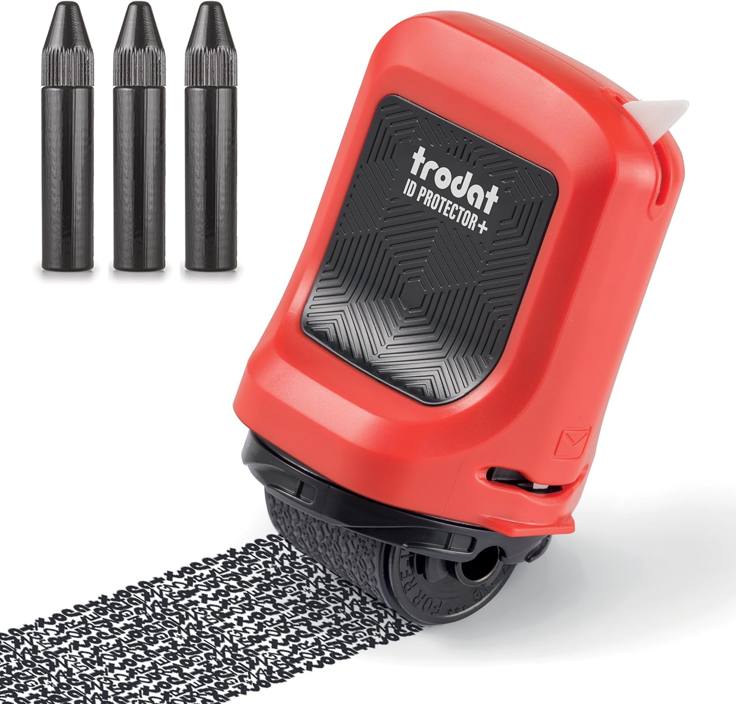 Trodat ID Protector+ Ink Roller – Identity Theft Protection Roller Stamp with Integrated Box & Letter Opener (3in1) – incl. 3 Refill Inks