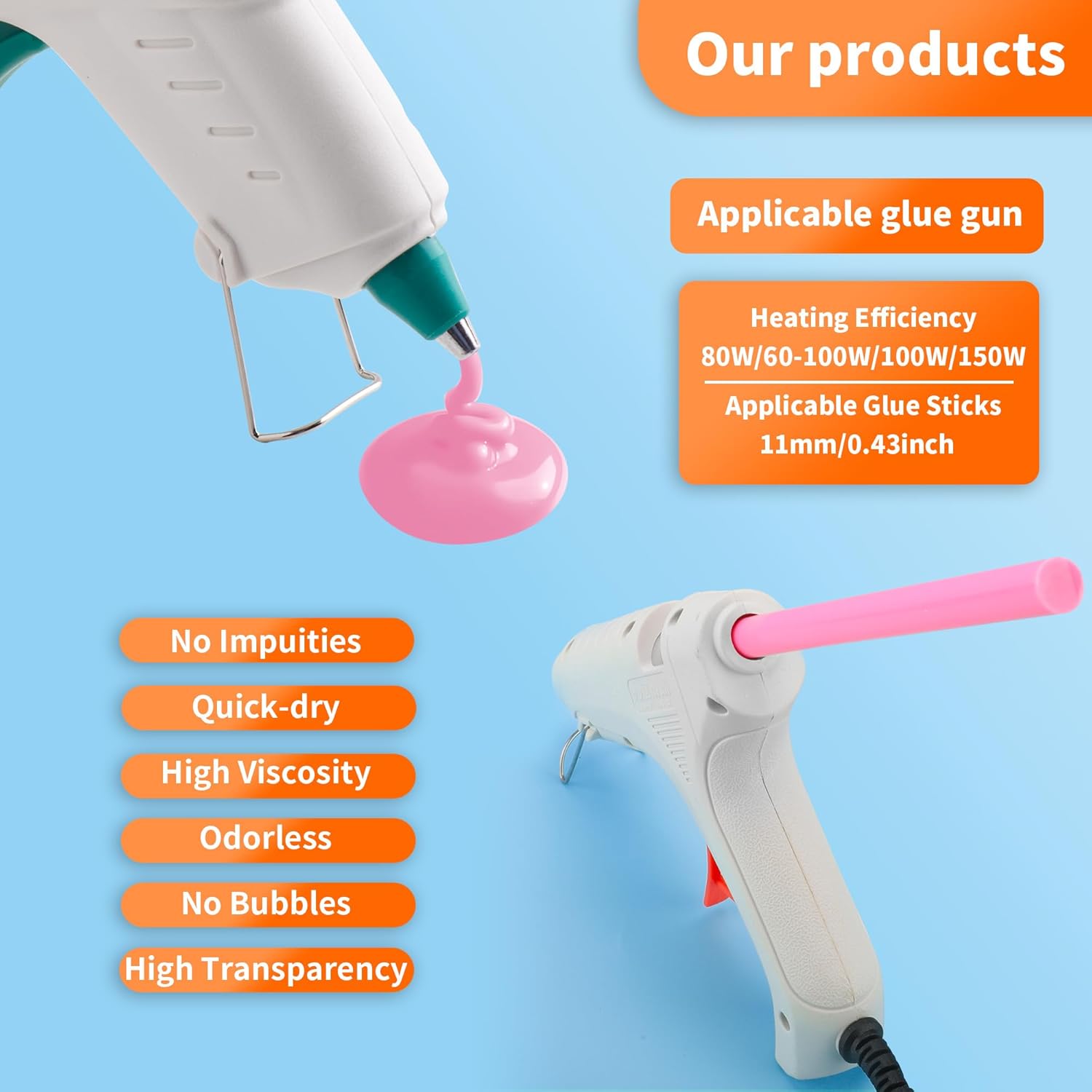 - 【Wide Application】hot glue gun sticks are perfect for crafting, card making, scrapbooking, carton sealing, phone case beauty, electronic appliances, gluing projects, waxing seal stamp, general repairs,creating arts, holiday crafts, decorations, home, office, school DIY and toys.