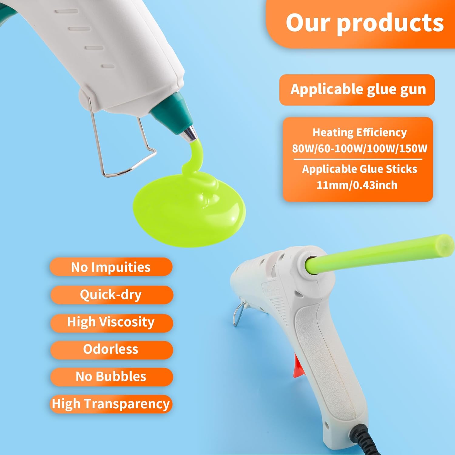 - 【Wide Application】hot glue gun sticks are perfect for crafting, card making, scrapbooking, carton sealing, phone case beauty, electronic appliances, gluing projects, waxing seal stamp, general repairs,creating arts, holiday crafts, decorations, home, office, school DIY and toys.
