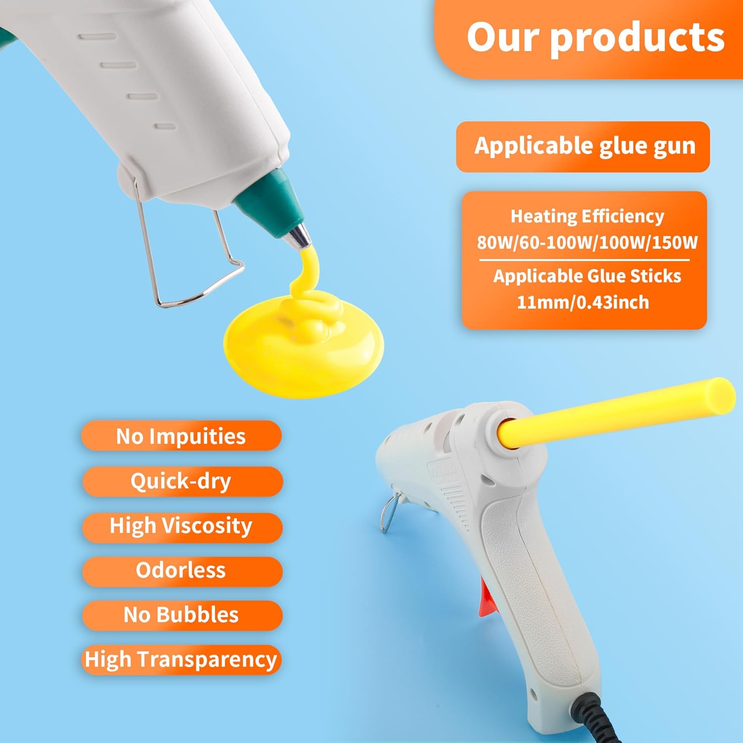 - 【Wide Application】hot glue gun sticks are perfect for crafting, card making, scrapbooking, carton sealing, phone case beauty, electronic appliances, gluing projects, waxing seal stamp, general repairs,creating arts, holiday crafts, decorations, home, office, school DIY and toys.