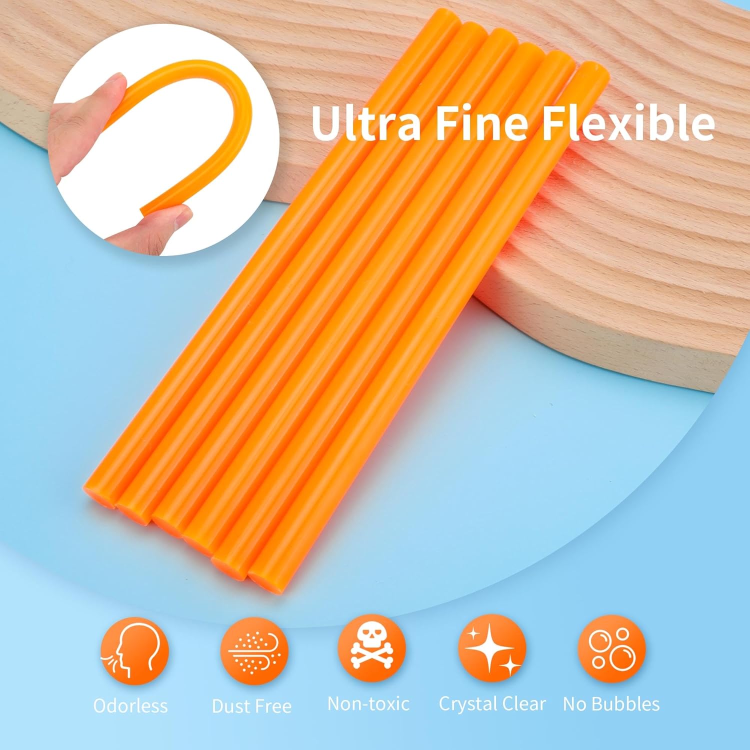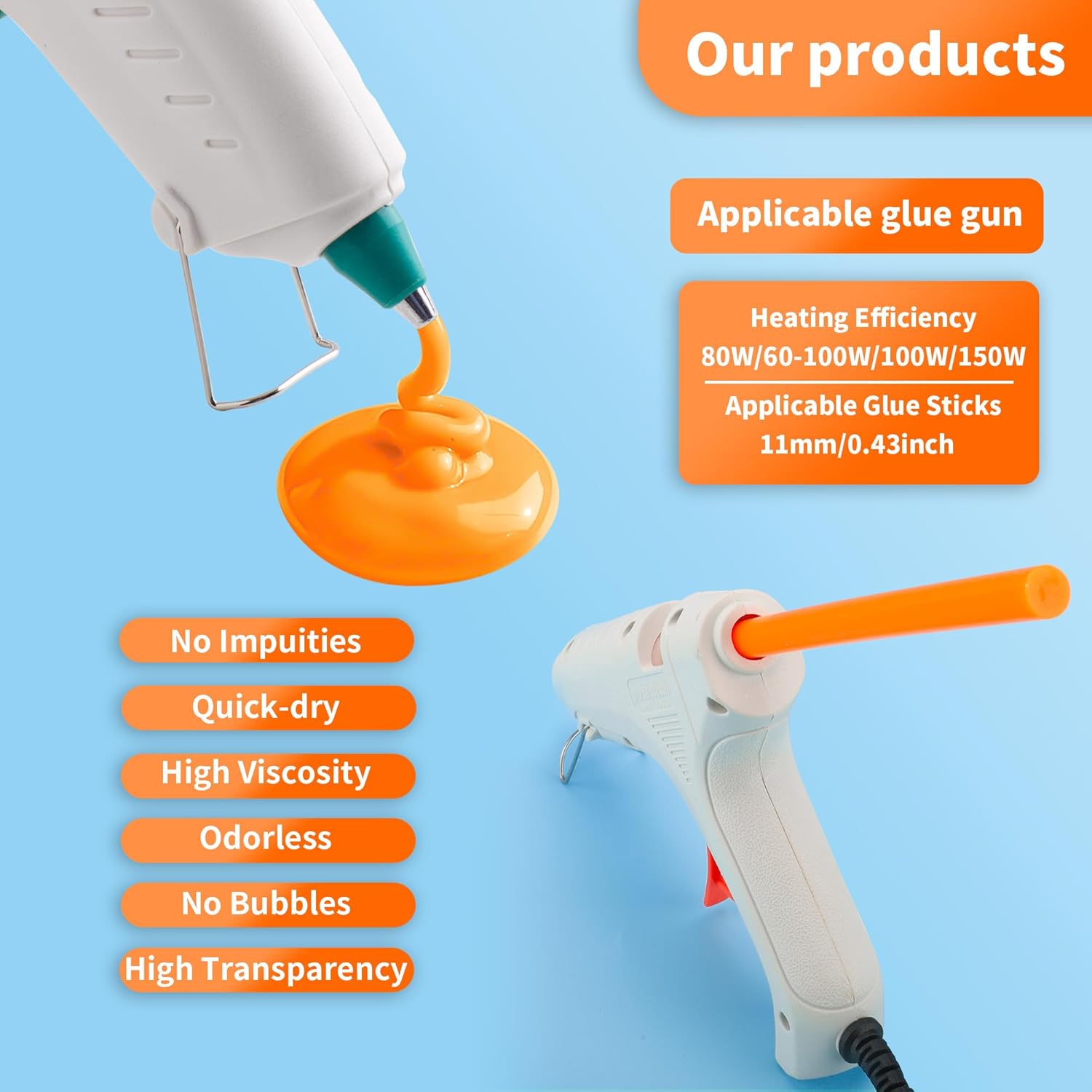 - 【Value Pack】2.1lb 52 pcs Orange hot glue Sticks Full Size, 11mm/0.43 inch diameter and 200mm/8 inch Length, Long hot glue sticks smooth operation, No need to change glue sticks Frequently, for variety holiday decorations, crafts, arts creation gluing projects and most repair use