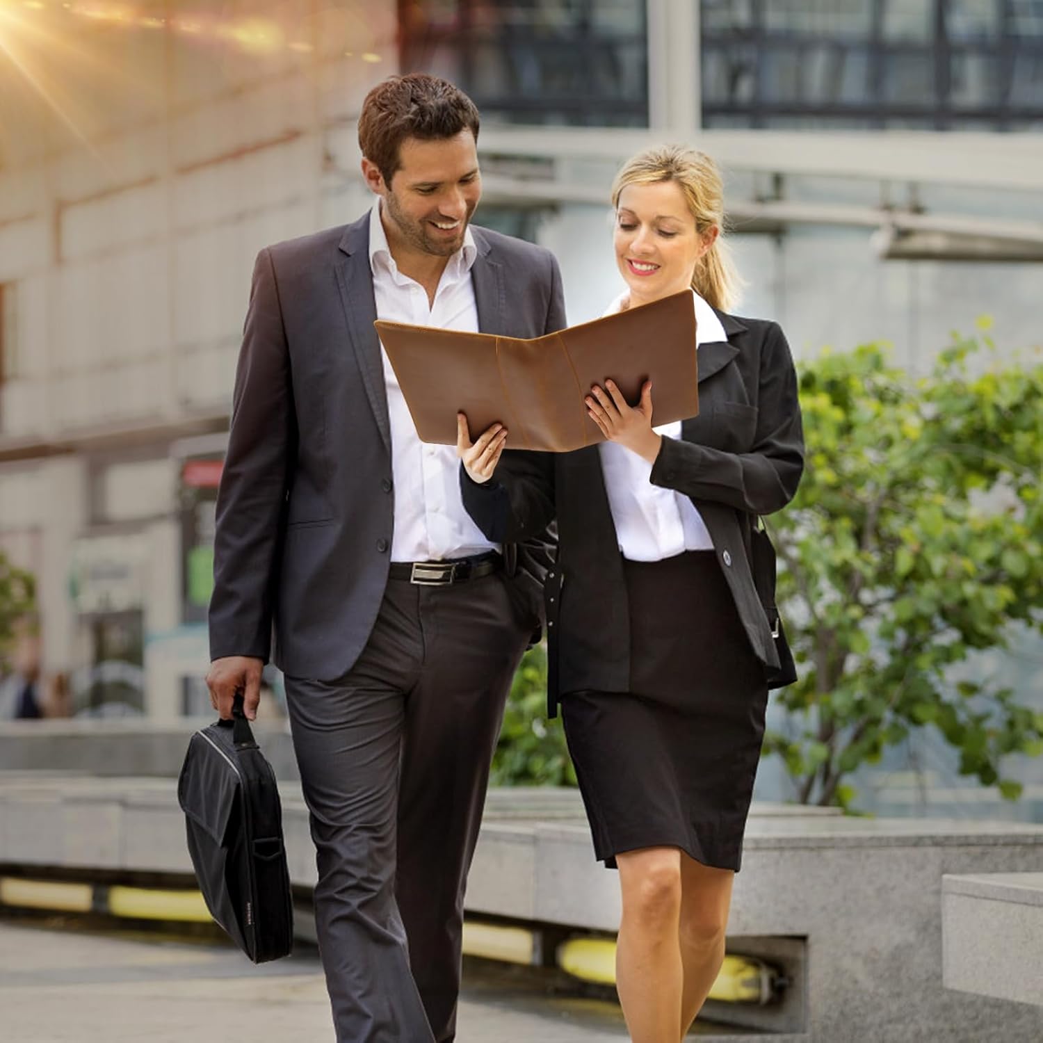 - ✔Never fumbling around again: With our professional leather portfolio, you may organize the letters, envelopes, the loose pages, the legal pad, important documents,business portfolio, papers, print-outs, sheet, leaflets, business credit cards, photos & all sorts of other paper stuff easily. Just click "Add to Cart" button to get this fantastic business padfolio right now, and you will wave your hand to work clutter.