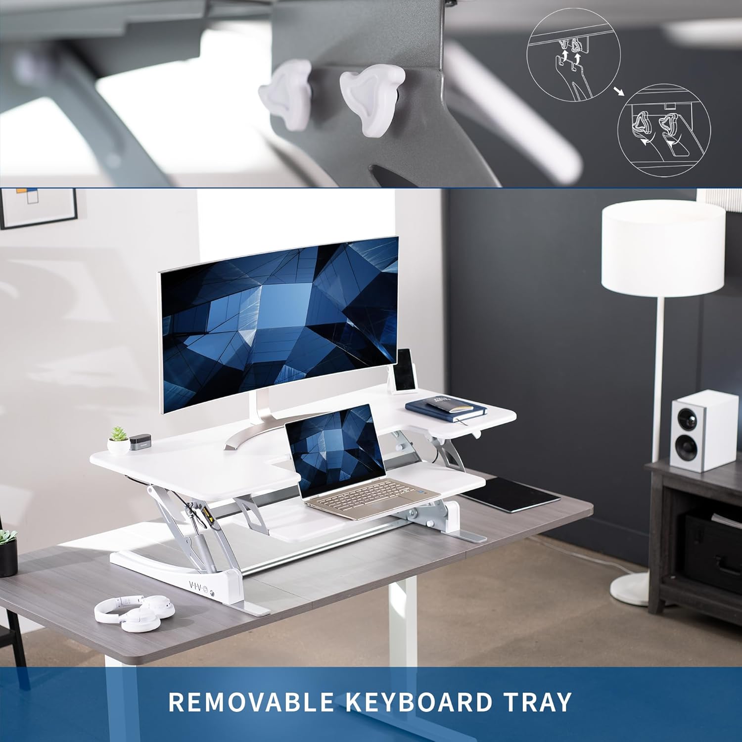 VIVO 48 inch Height Adjustable Large Stand Up Desk Converter, V Series, Quick Sit to Stand Tabletop Dual Monitor Riser Workstation, White, DESK-V048VW