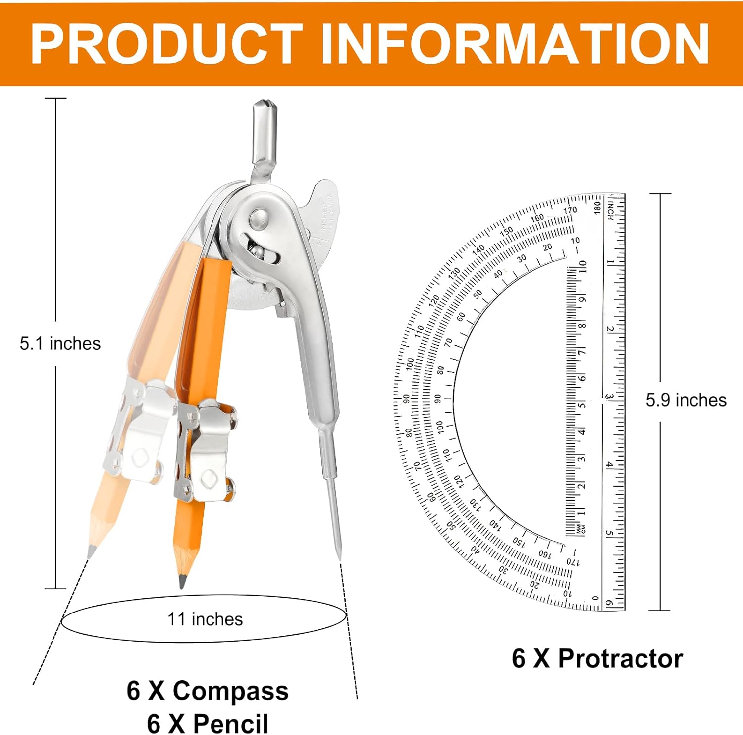- Value Compass Geometry Tool Set: you will receive 12 pack geometry compass set, including 6 pieces of math compass with pencils and 6 pieces of geometric protractors, enough to meet your different work or study needs, and share with family or friends
