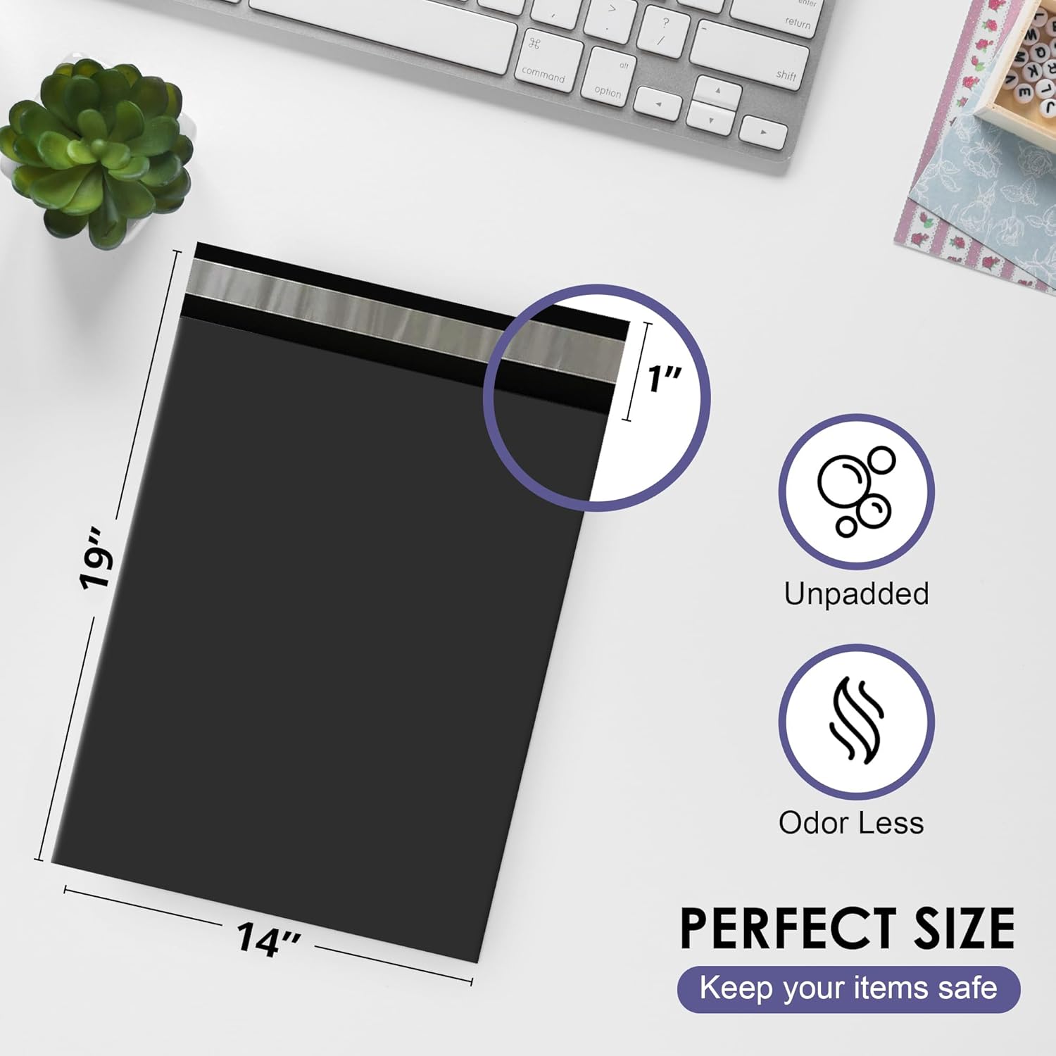 Black Large Poly Mailers 14.5x19 Inch | Strong Adhesive Self-Seal Mailer Bag | Tear, Tamper, Water Resistant Shipping Envelopes | Thick Strong polymailer Bags | Clothing Shipping Bags | 500 Pcs Bulk