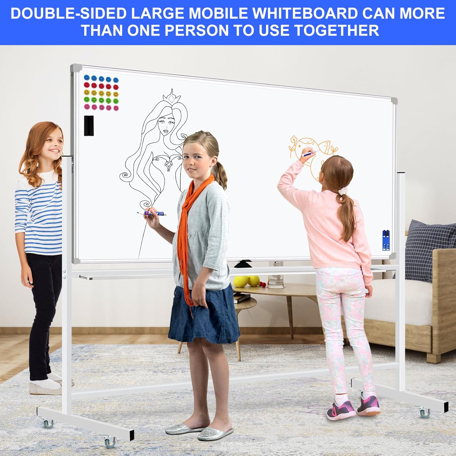 Mobile Magnet Large Whiteboard with Stand 72x40 Double-Sided Dry Erase Board with Stand - Magnetic Portable Standing Whiteboard - Rolling White Boards with Easy Flip Feature