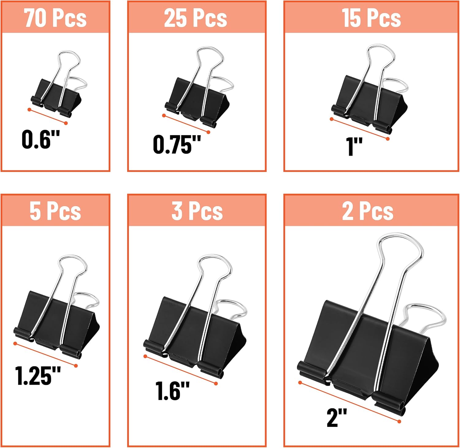 Mr. Pen- Binder Clips, 120 Pcs, Assorted Sizes, Black, Medium, Small, Office Supplies, Paper Clips