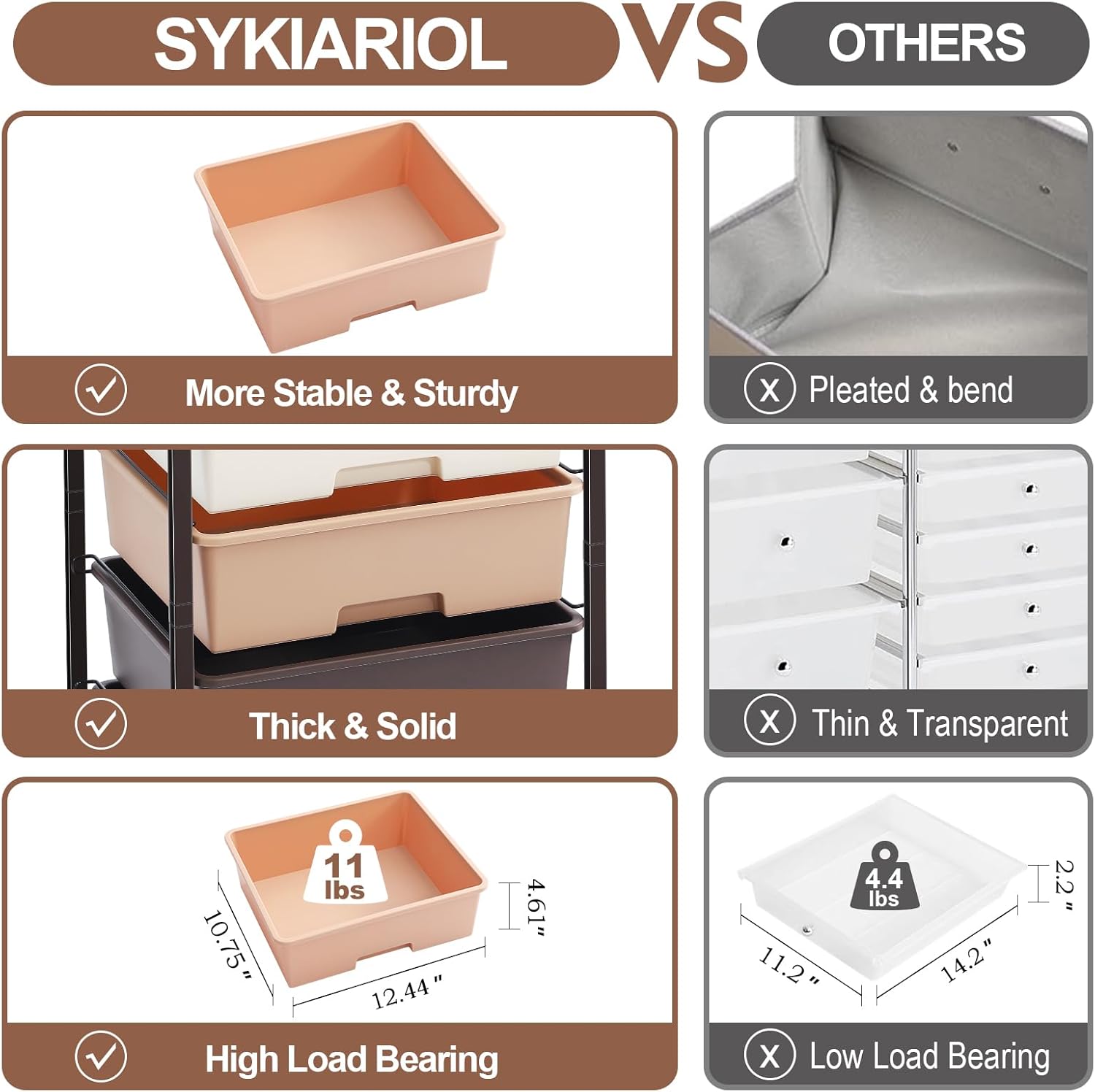- WOODEN TABLETOP & THICK DRAWERS & METAL FRAME: The utility cart with drawer boasts a sturdy and durable powder-coated steel frame with water and rust resistance ensures a sturdy construction and built to last.Additionally, the slide-out drawers are made of durable PP material, which also boasts great durability.Holds 33 pounds on tits op plate and 11 pounds per drawer. This 5 drawer rolling cart will serve you for a long time.