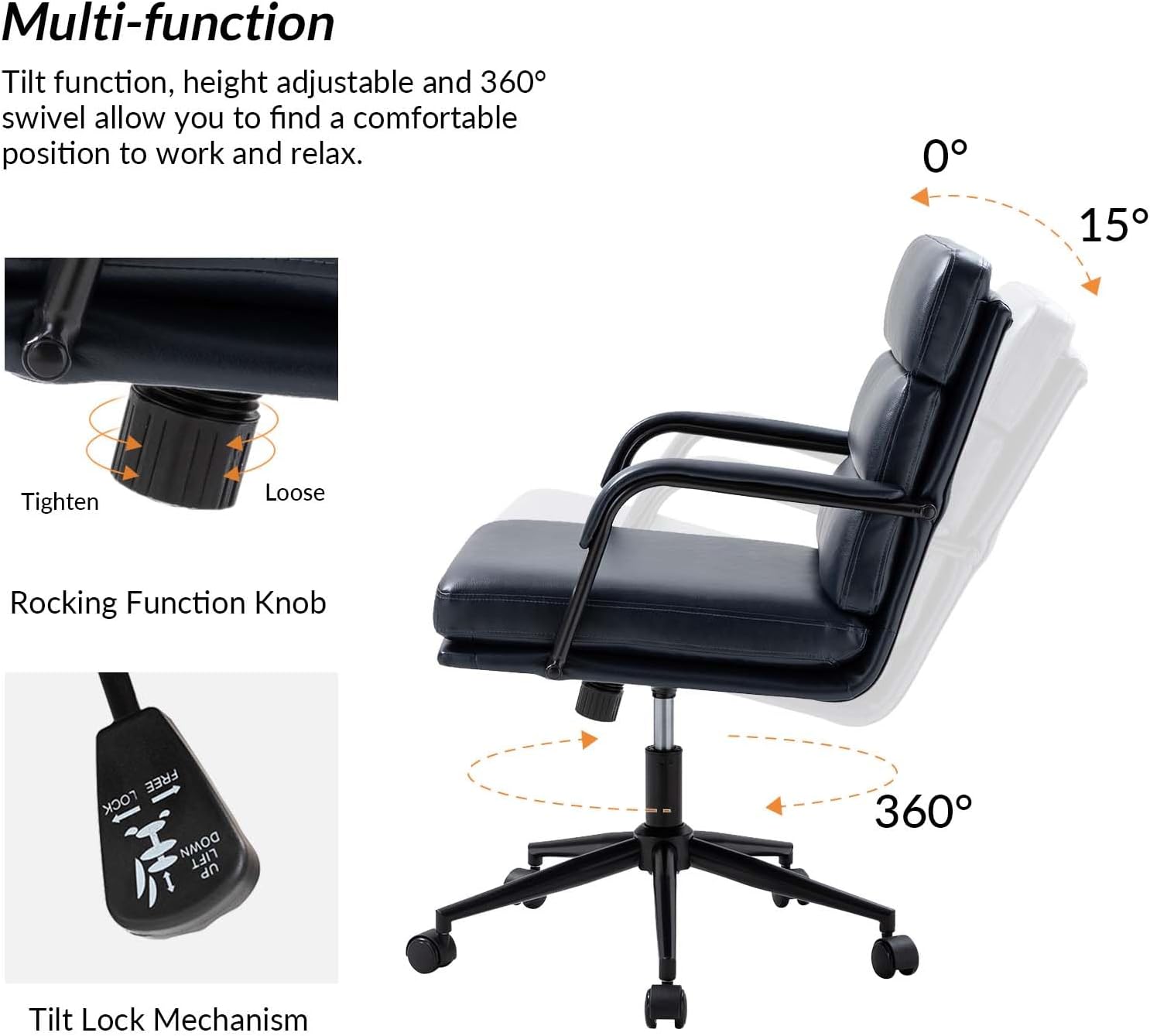 HULALA HOME Modern Faux Leather Home Office Chair with Tilt Lock & Metal Base, Desk Chair with Wheels & Padded Cushion, 360° Swivel Wide Seat Computer Task Chair, Navy