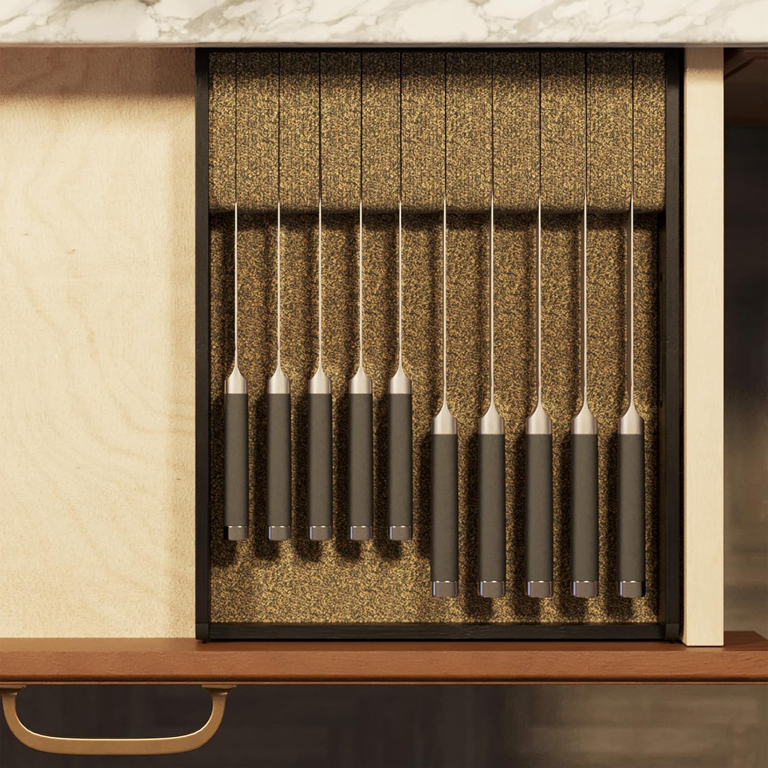 - BLACK ORGANIZED KNIFE DRAWER - Make your kitchen drawer neat and organized with bamboo knife organizer. The knives organizer is designed for your different knives kitchen drawer organization