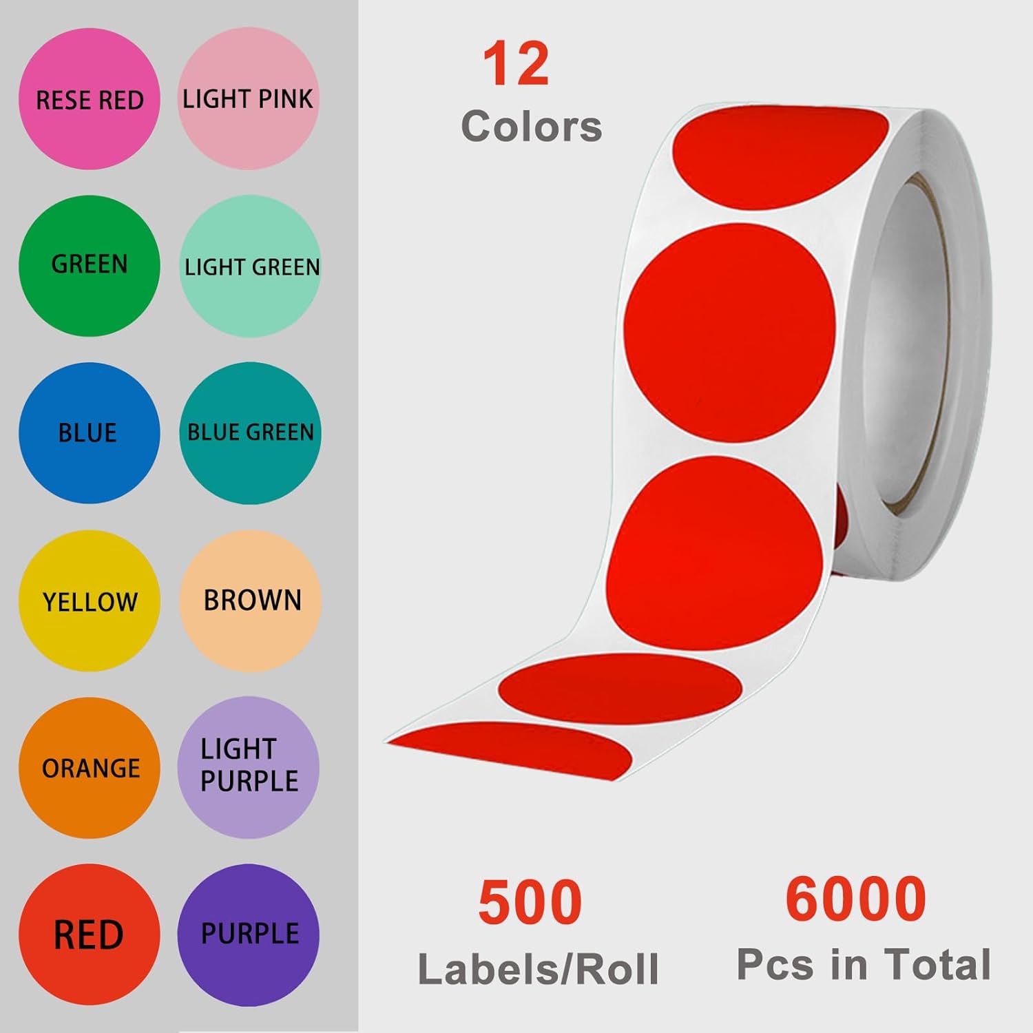 - Specification: 12 rolls of 1" color-code dot stickers, 500 stickers per roll; 6000 PCS in total. Sufficient quantity and various colors will meet your daily decorating needs.