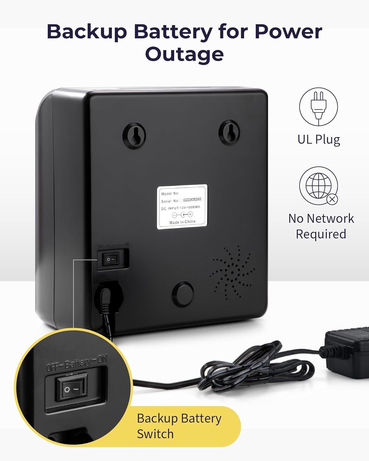 - Backup Battery for Emergency Situation: The time punch clock machine is equipped with a backup battery switch optional to ensure functionality during emergency situations. This backup battery serves as a reliable power source, allowing the time clock to continue operating even in the event of a power outage or other unforeseen circumstances.