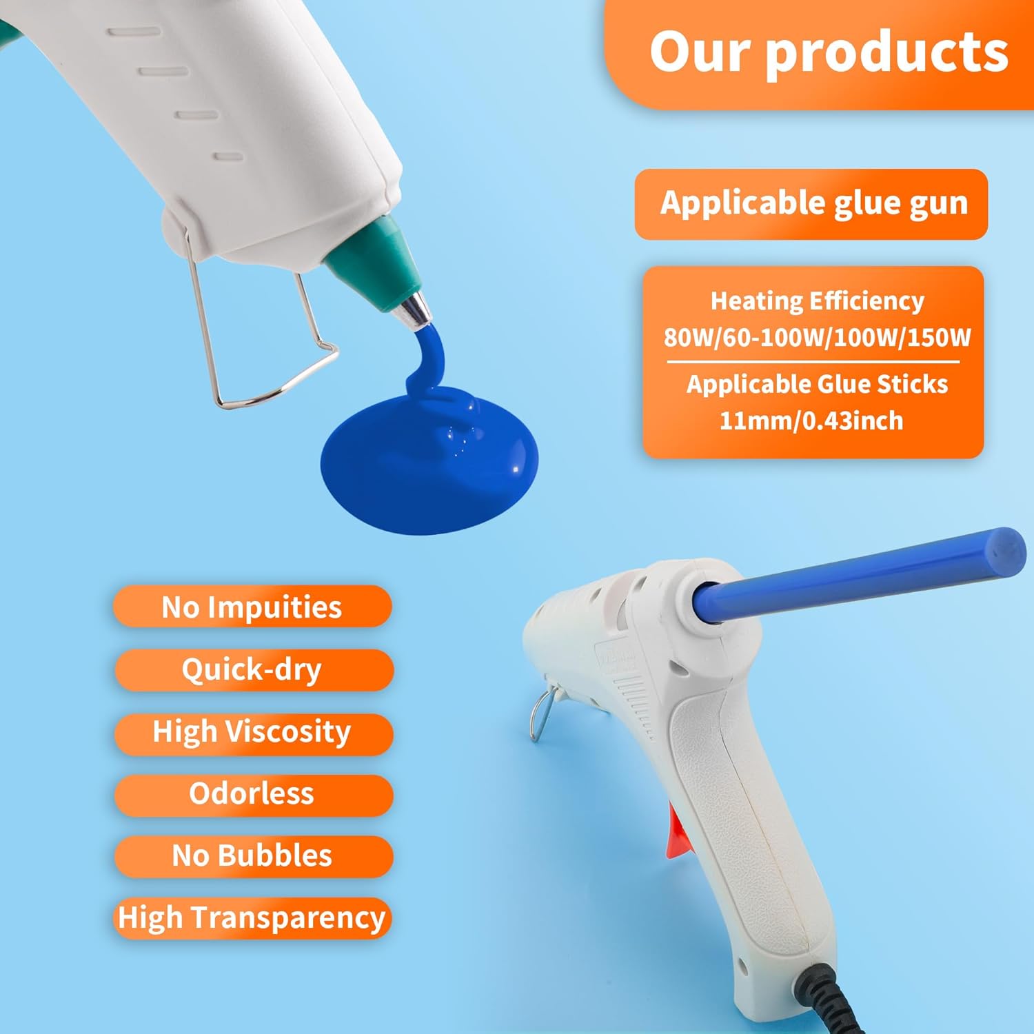 - 【Value Pack】52 pcs Blue hot glue Sticks Full Size, 11mm/0.43 inch diameter and 200mm/8 inch Length, Long hot glue sticks smooth operation, No need to change glue sticks Frequently, for variety holiday decorations, crafts, arts creation gluing projects and most repair use