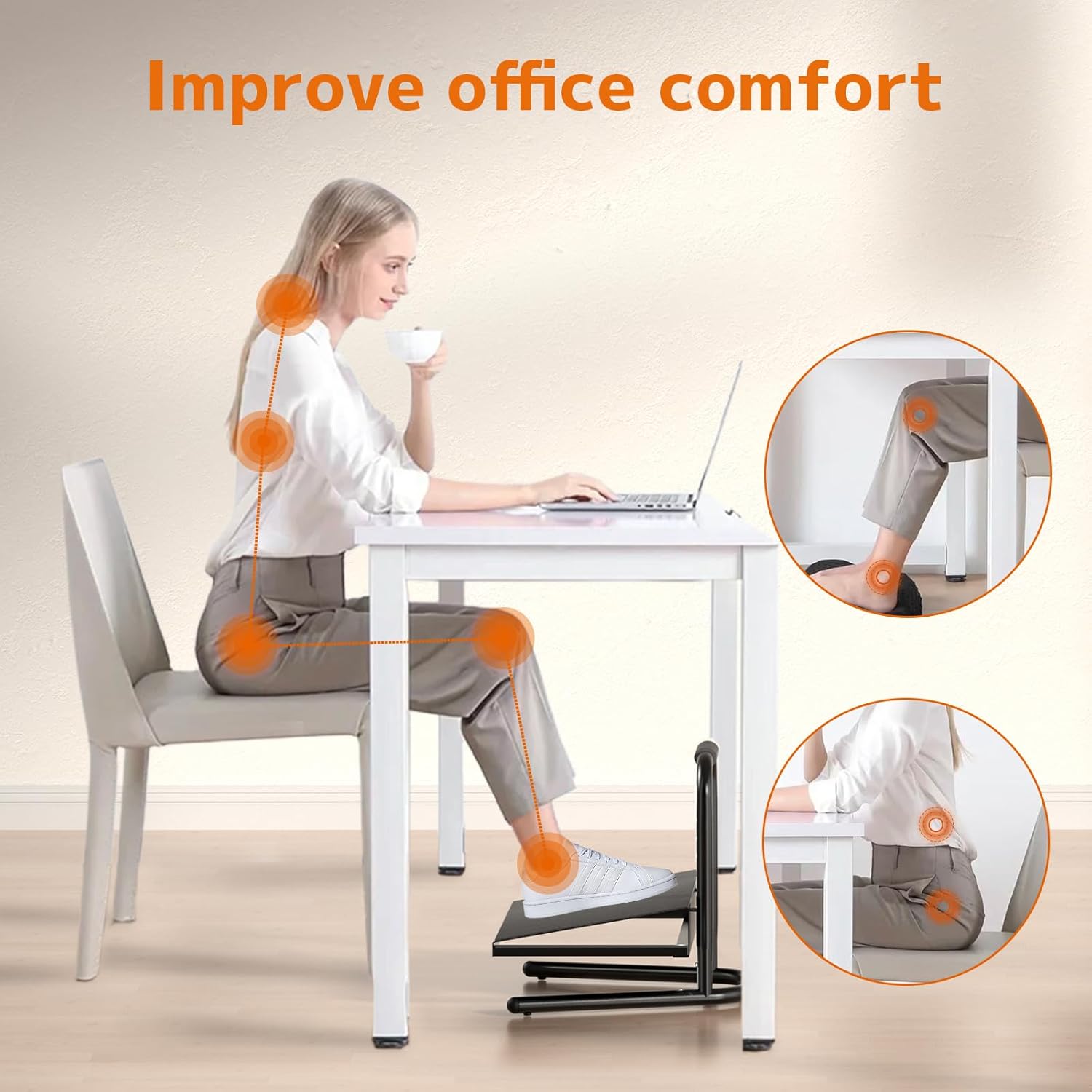 - Height-adjustable footrest:This under-desk footrest relieves pressure on leg muscles, knees and ankles, making it ideal for groups that sit or stand for long periods of time