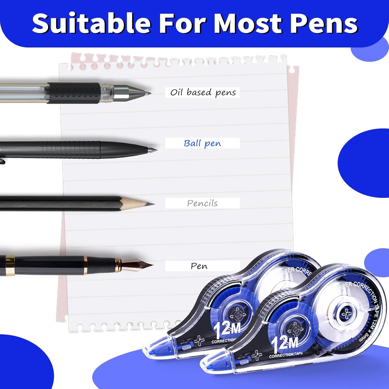 - Office and School Supplies: This correction tape is suitable for a variety of ballpoint pens, gel pens, and fountain pens. Roller design is easy to use and can be adjusted, perfect for office and school use, you can also give it as a gift to others