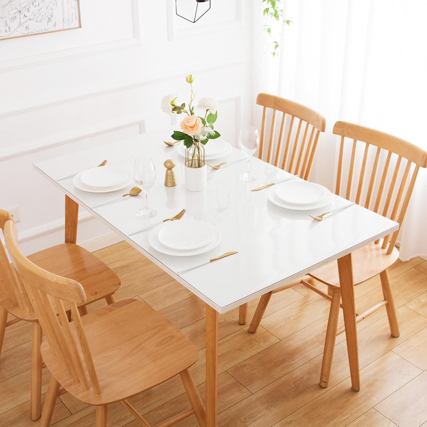 - 🌎THICK & HEAVY - Our plastic table covers are thick enough to hold in place. Clear table cover protector are recommended for kitchen and dining room tables because they offer better heat resistance up to 176°F/80°C. Transparent table protector are a great choice for textured table tops or on tablecloths. For glass, marble or other smooth finishes, use a tablecloth to prevent air bubbles.