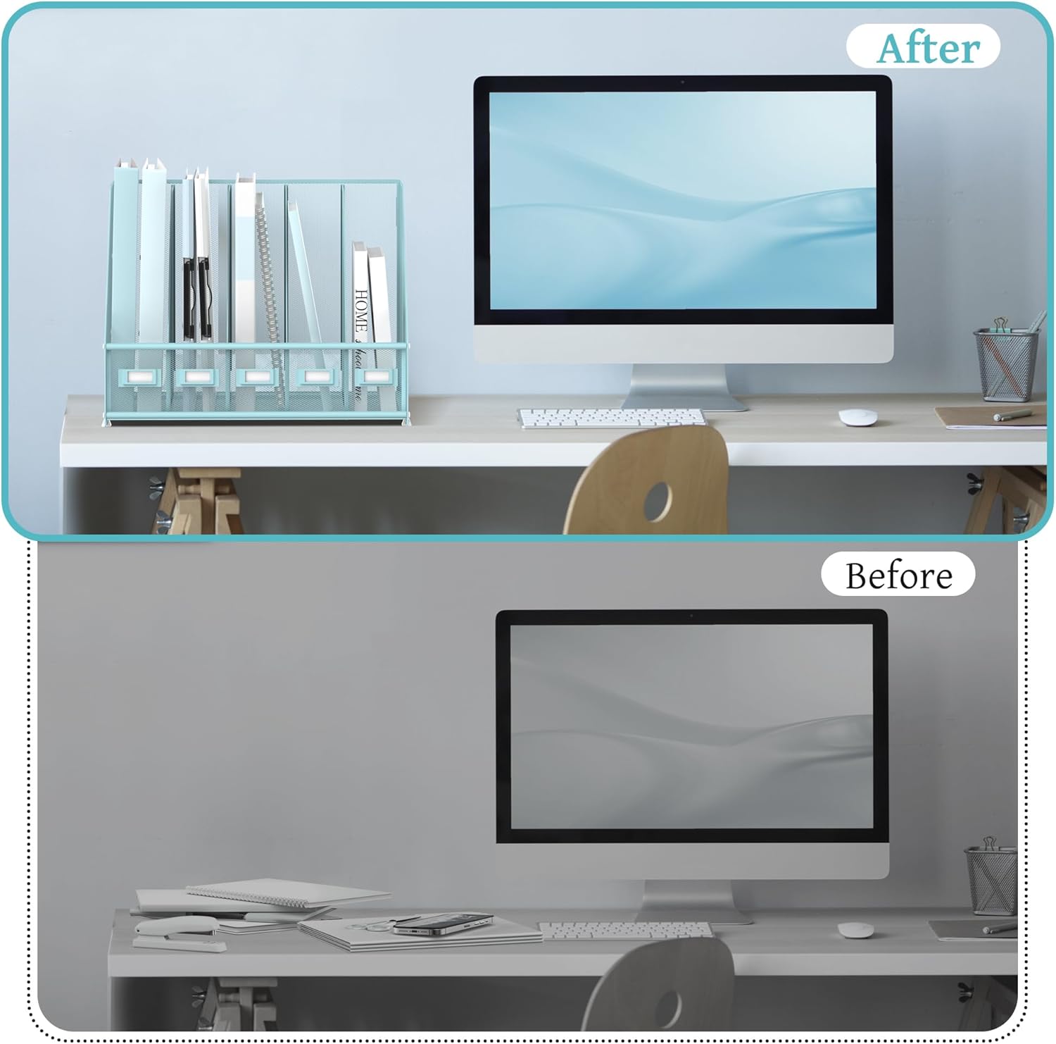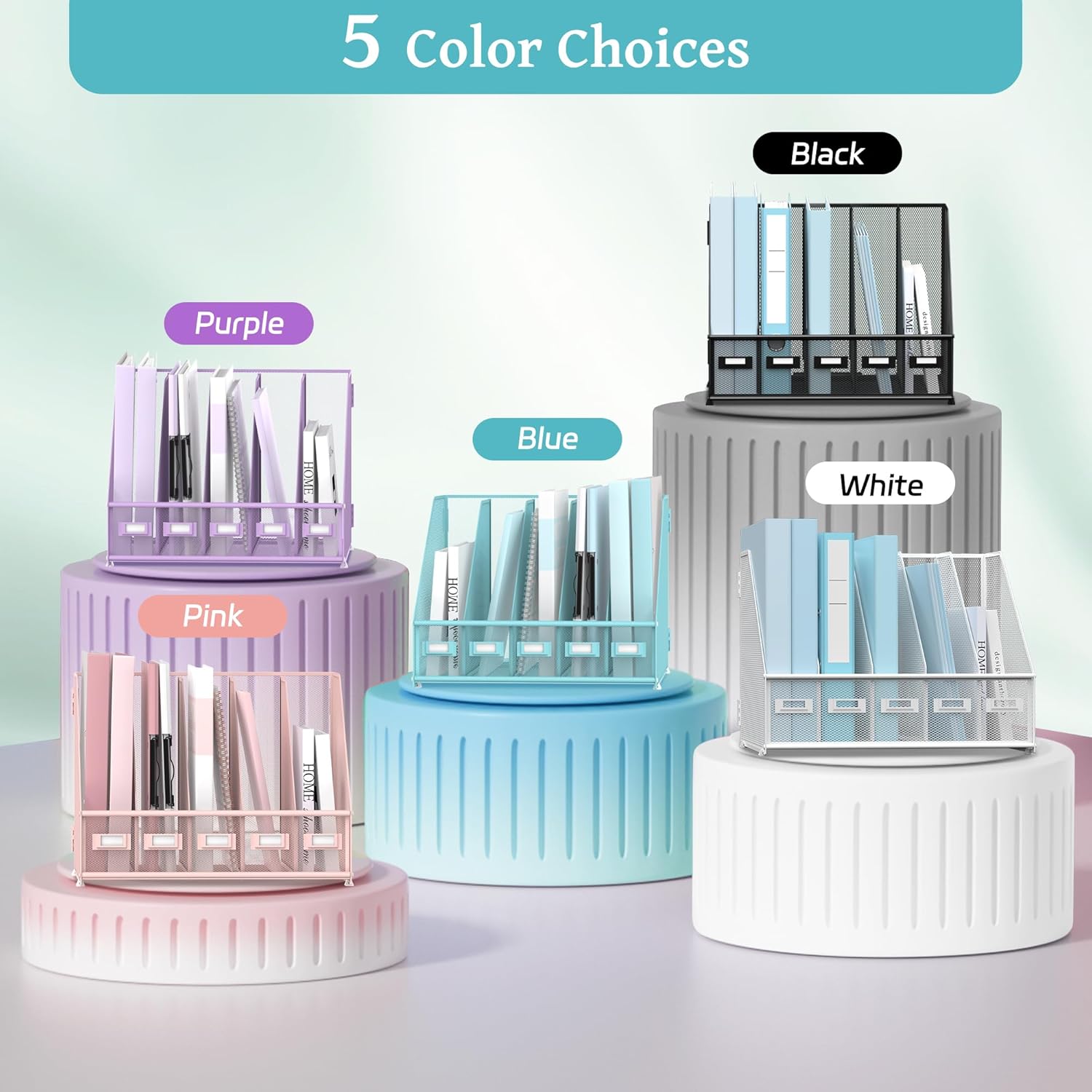 - [Space-Saving] Our mesh magazine file holder features 5 compartments, designed to consolidate your desktop items. This file organizer tames desk clutter, saves valuable space, and maintains a clean and orderly workspace.
