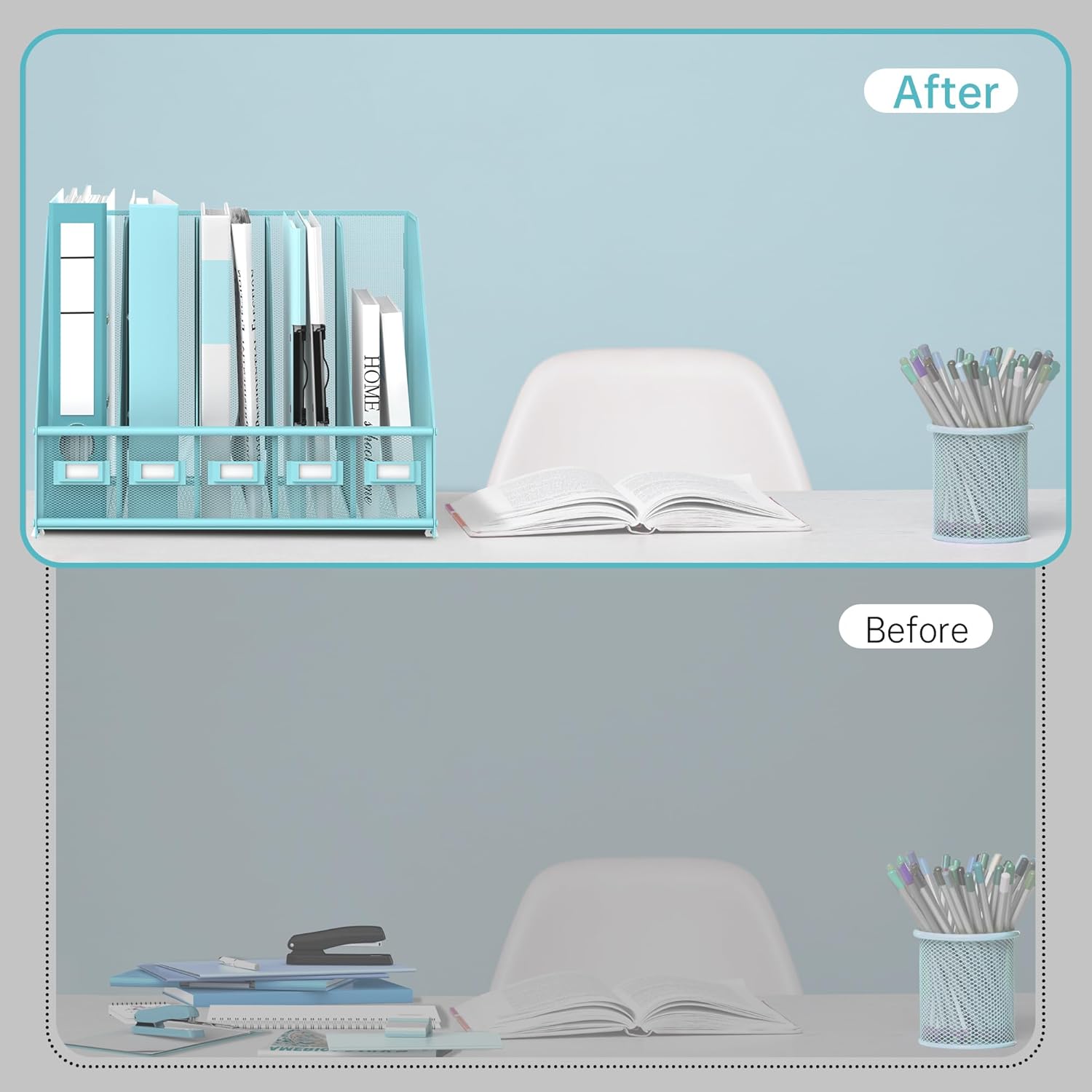- [Ultra-Large Capacity] The SUPEASY magazine file holder plus boasts a storage capacity greater than the standard. This desk organizer designed to comfortably accommodate standard-sized binders.